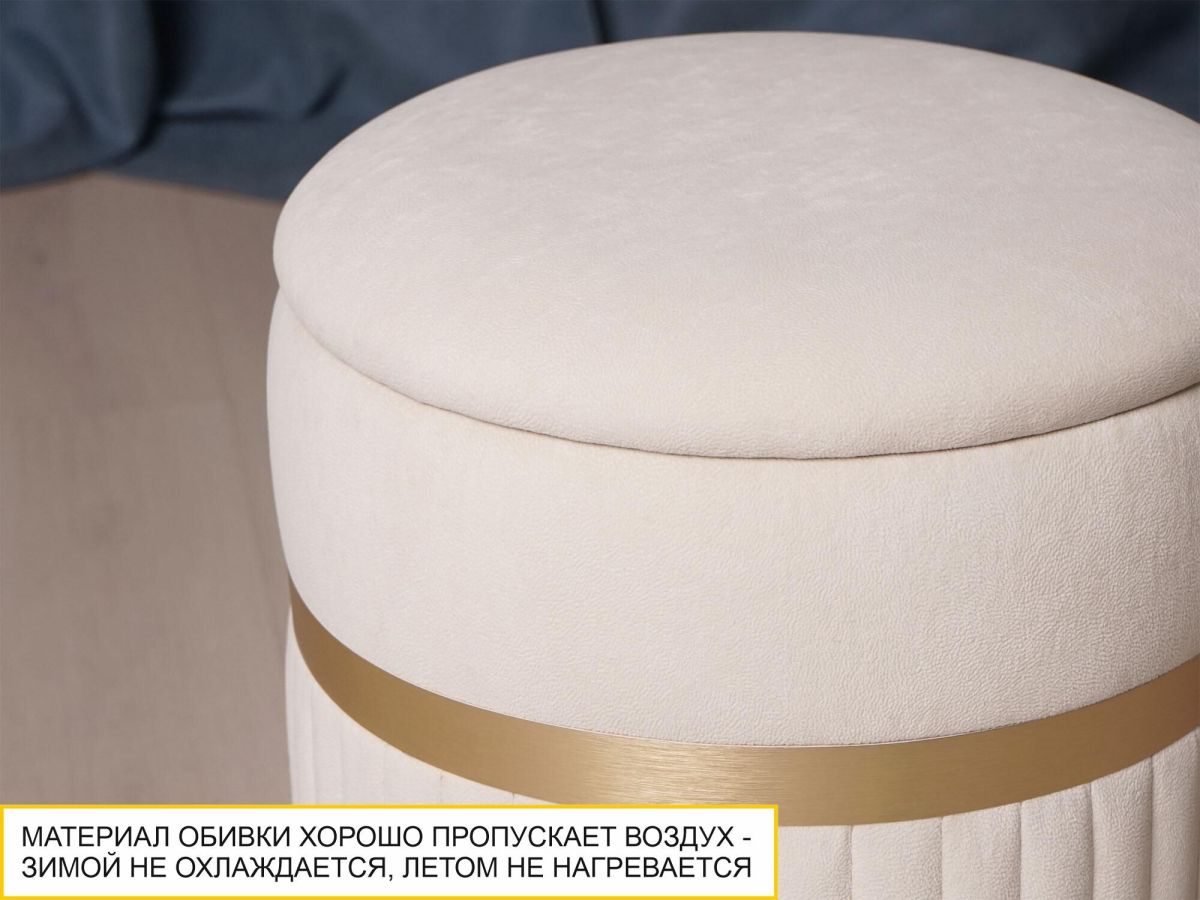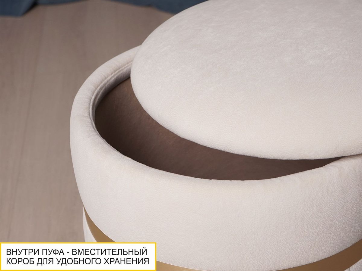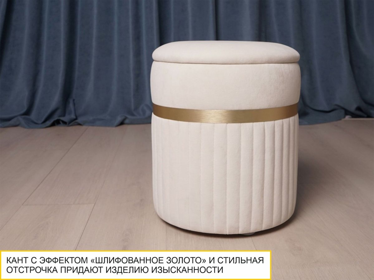 - Металлизированный декоративный кант пуфа имеет качественный незаметный шов- изделие выглядит аккуратно со всех сторон.