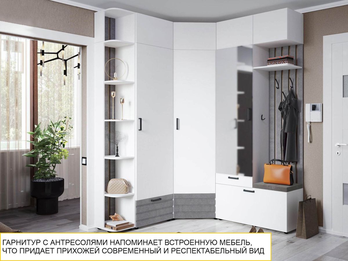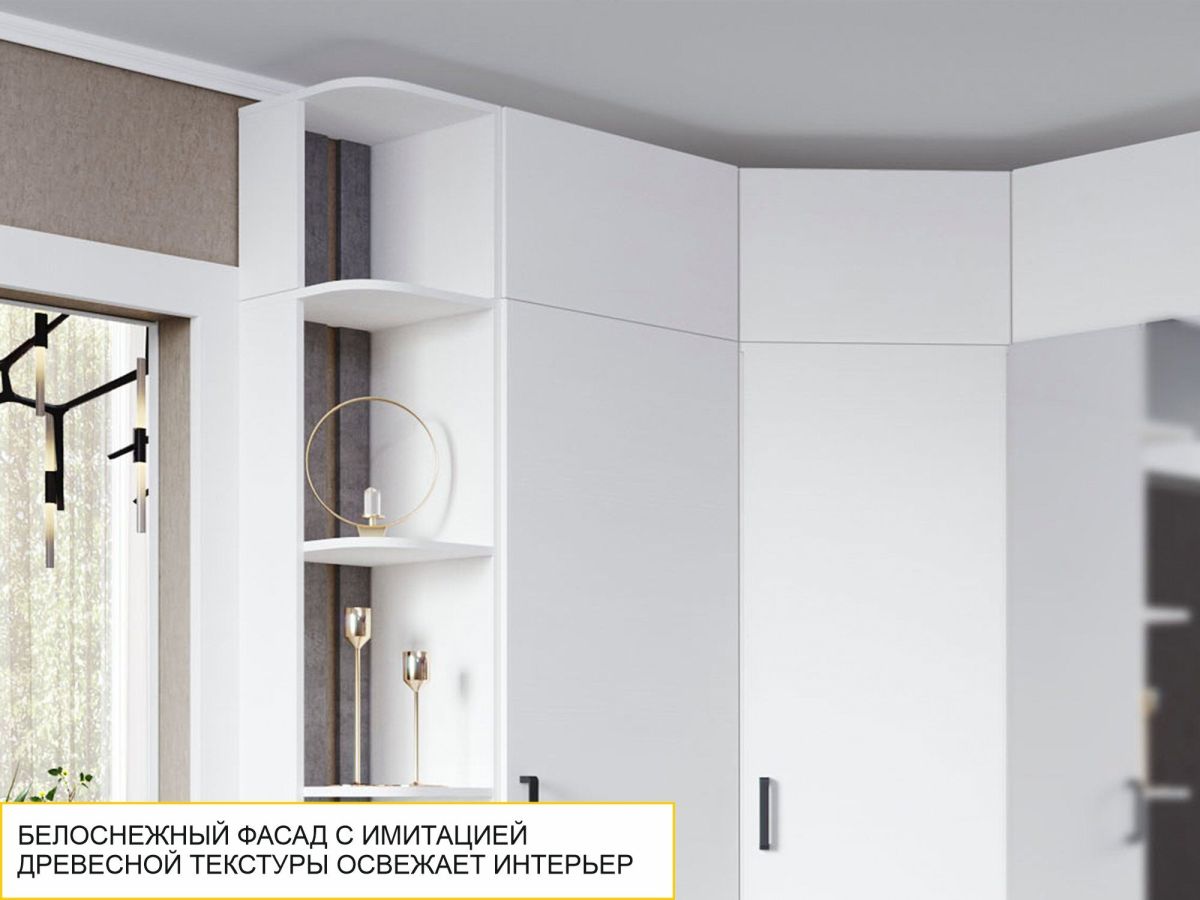 - Белоснежный фасад с имитацией древесной текстуры делает интерьер Вашей прихожей стильным и свежим.