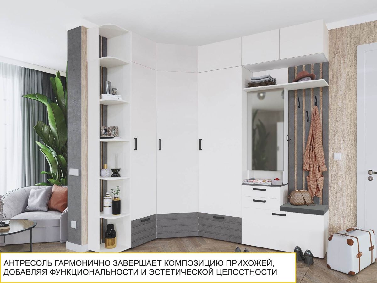 Шкаф-антресоль – это не только дополнительное место хранения, но и выразительное дизайнерское решение. Антресоль гармонично завершает композицию прихожей, добавляя функциональности и эстетической завершенности. Исчезает ощущение визуального шума и пустоты над шкафами.