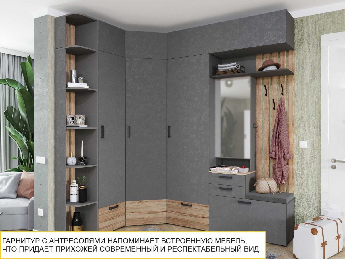Шкаф-антресоль – это не только дополнительное место хранения, но и выразительное дизайнерское решение. Антресоль гармонично завершает композицию прихожей, добавляя функциональности и эстетической завершенности. Исчезает ощущение визуального шума и пустоты над шкафами.
