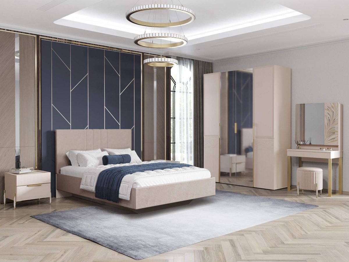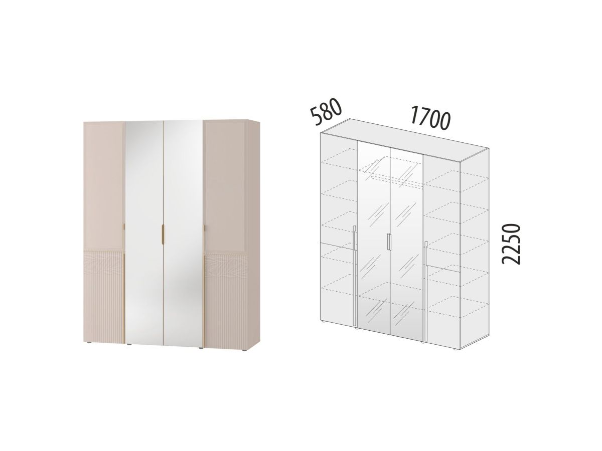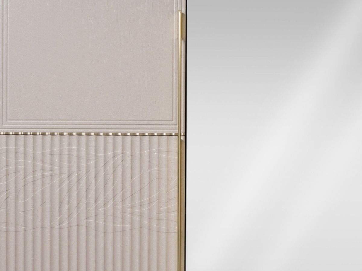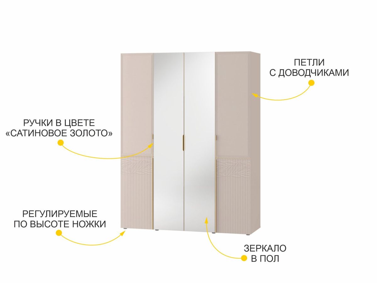 Четырехдверный шкаф с зеркалом «Флоренция 904.14» является частью модульной программы «Флоренция». Спальня «Флоренция» – это образец изящности и современной роскоши. Нежный цвет «Кашемир» создает светлую и теплую основу в интерьере, которая наполняет пространство спокойствием и гармонией. Оригинальные элементы в цвете «сатиновое золото», элегантная фрезеровка и изящный дизайнерский рисунок подчеркивают утонченный дизайн коллекции.
