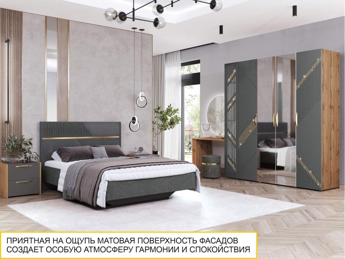 Четырехдверный шкаф с зеркалом «Монако 902.14» является частью модульной программы «Монако 902». Коллекция «Монако 902» - это образец элегантного стиля и утонченного вкуса. Сочетание матовой графитовой поверхности фасадов с благородной древесной текстурой создает особую атмосферу гармонии и комфорта.