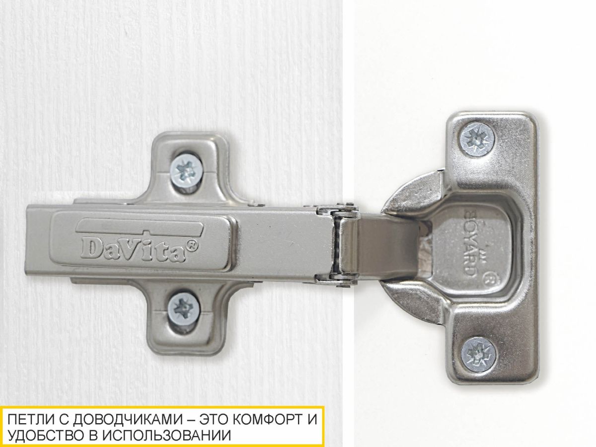 • Дверцы оснащены петлями с доводчиками, которые обеспечивают плавное и бесшумное закрывание.