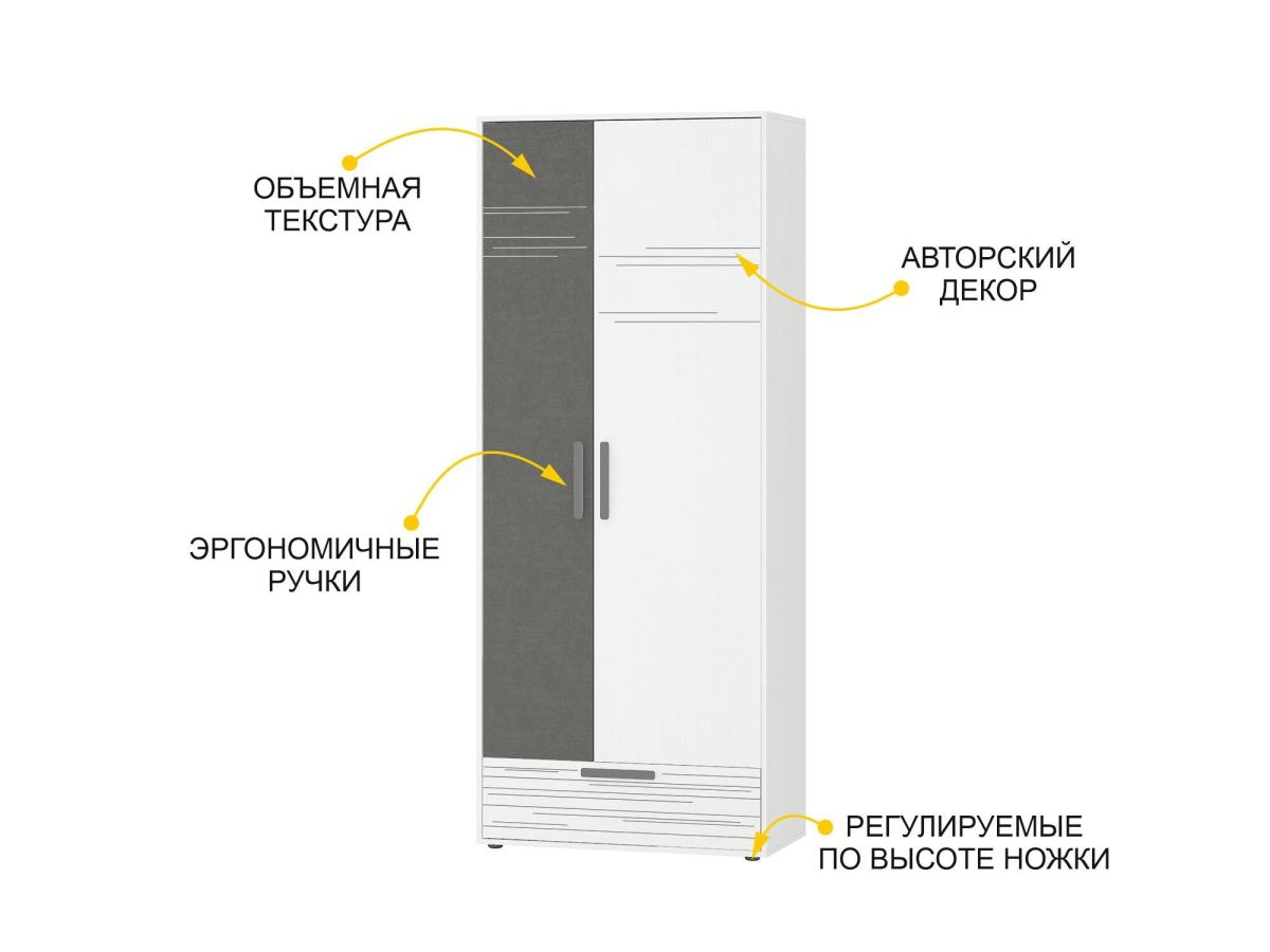 Шкаф «Аляска 502.01» является частью модульной программы «Аляска 502». Эта коллекция представляет собой новый уровень комфорта и стиля. Изысканный минимализм с акцентом на функциональность делает эту коллекцию идеальным выбором для мечтательных и независимых подростков и их родителей.
