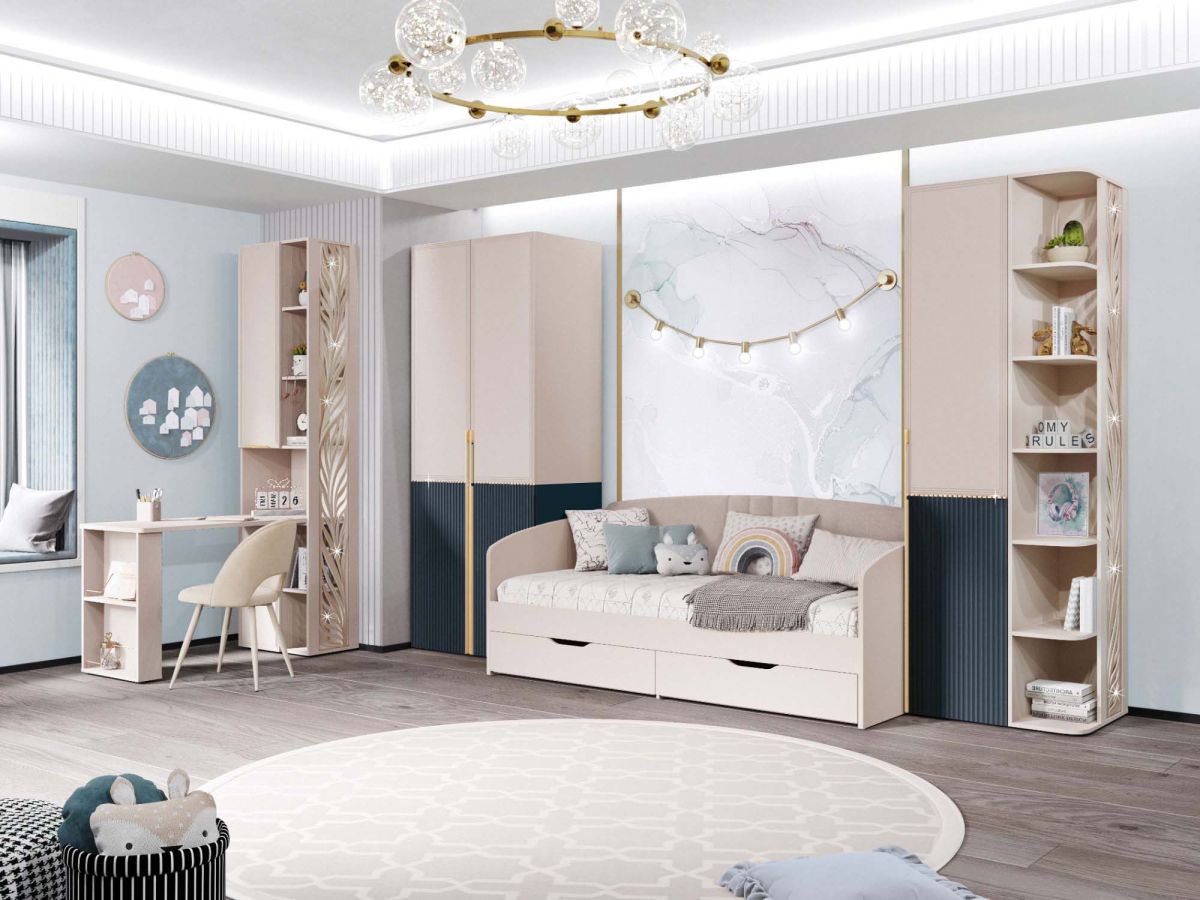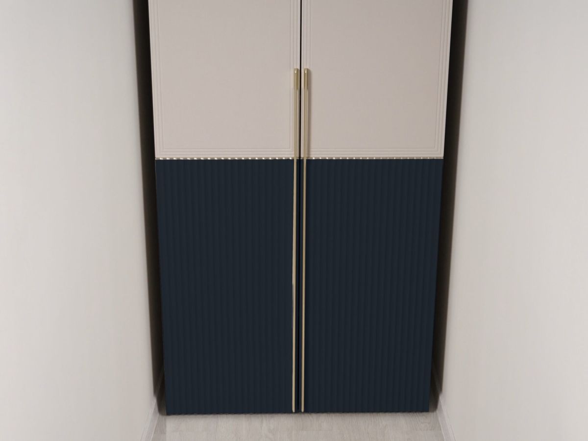 Двухдверный шкаф «Флоренция 905.13» является частью модульной программы «Флоренция». Спальня «Флоренция» – это образец изящности и современной роскоши. Цвета «Кашемир» и «Индиго» образуют стильный и теплый дуэт: светлый тон наполняет пространство мягкостью, а насыщенный темно-синий придает интерьеру глубину и изысканность. Оригинальные элементы в цвете «сатиновое золото» и элегантная фрезеровка подчеркивают утонченный дизайн коллекции.