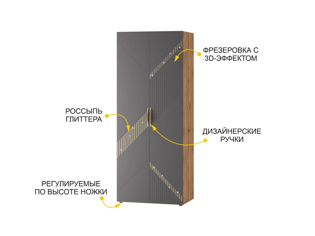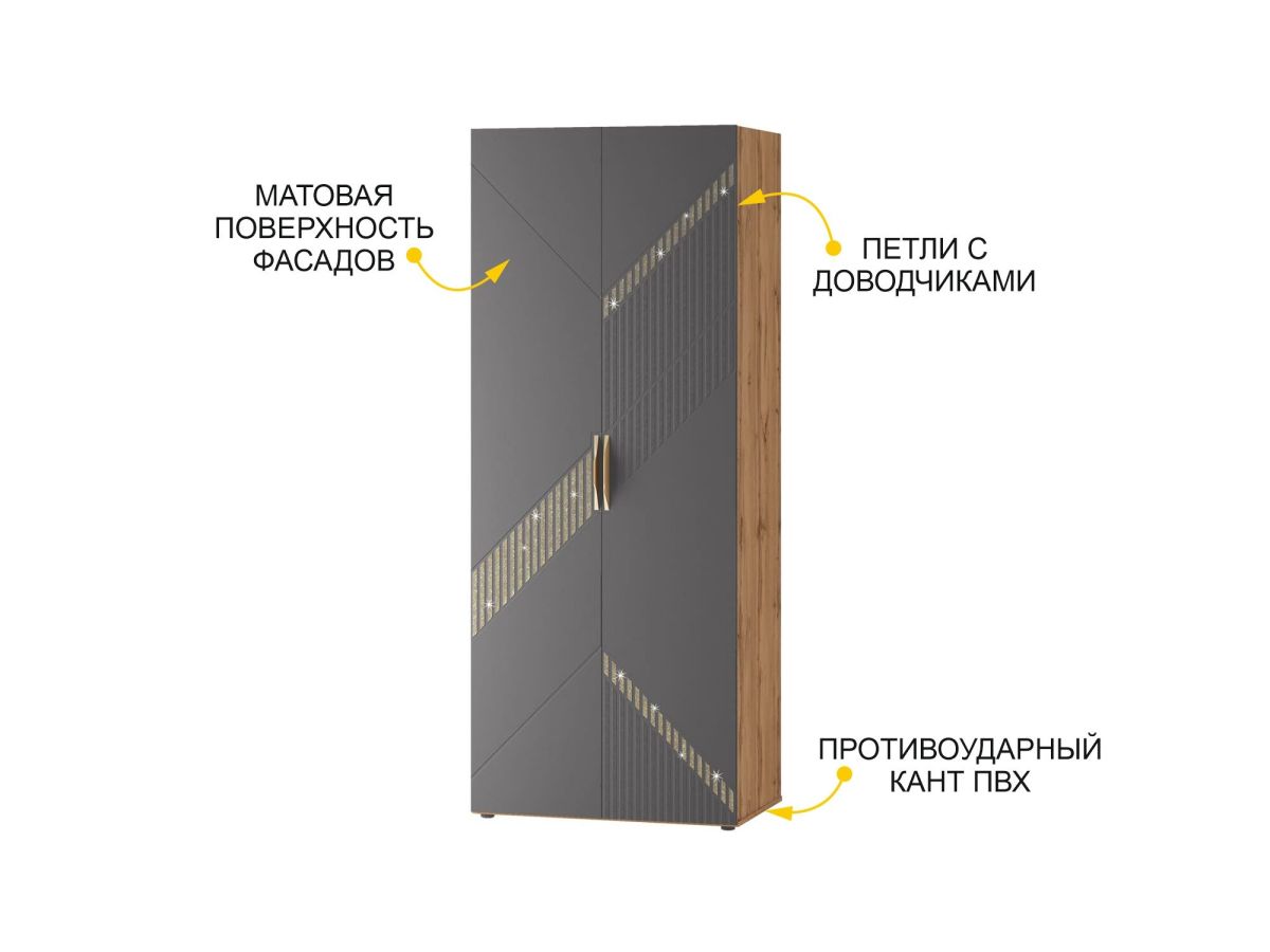 Двухдверный шкаф «Монако 902.43» является частью модульной программы «Монако 902». Коллекция «Монако 902» - это образец элегантного стиля и утонченного вкуса. Сочетание матовой графитовой поверхности фасадов с благородной древесной текстурой создает особую атмосферу гармонии и комфорта.