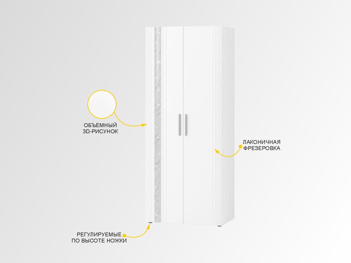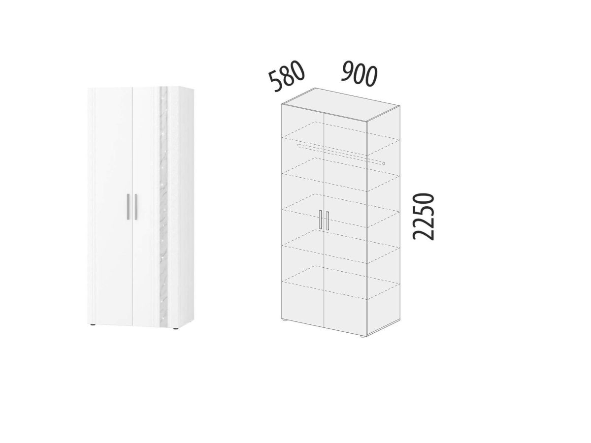 Шкаф двухдверный универсальный «Николь 901.43» является частью модульной программы «Николь». Сочетание белоснежных матовых фасадов с нежно-серым мерцающим декором «мрамор» - визитная карточка этой коллекции. Конструктив и дизайн модели продуман до мелочей.