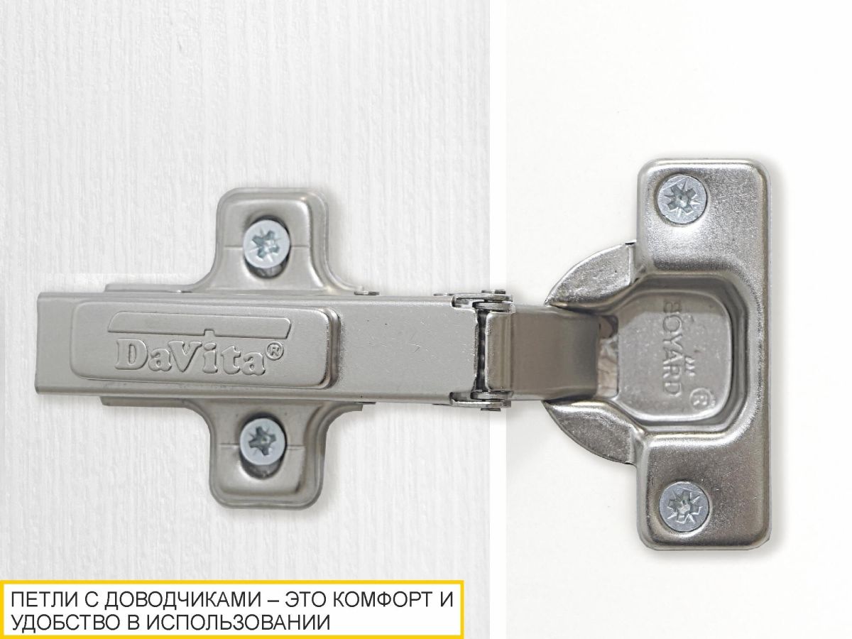 - Дверцы оснащены петлями с доводчиками, которые обеспечивают плавное и бесшумное закрывание.