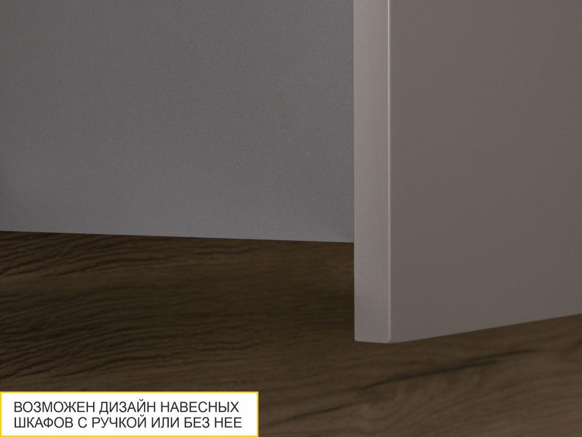 • Отсутствие лицевой фурнитуры подчеркивает современный дизайн мебели, дверцы модулей легко и удобно открываются за счет свеса фасада. По желанию можно установить ручку, прекрасно гармонирующую с акцентными элементами. Ручка входит в комплект.