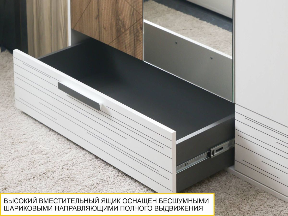 • Вместительный ящик в нижней части шкафа оснащен бесшумными шариковыми направляющими полного выдвижения, которые обеспечивают удобство и длительный срок эксплуатации.