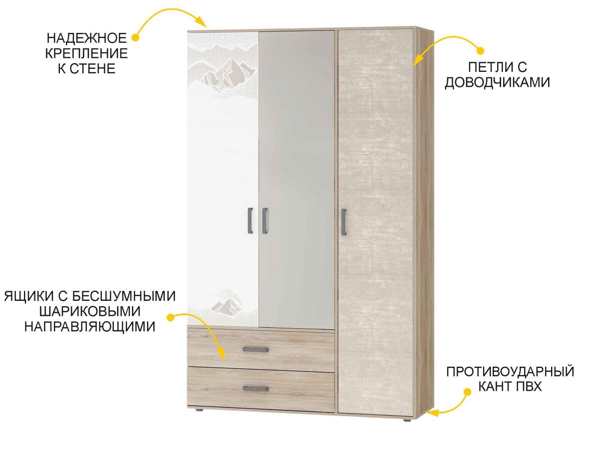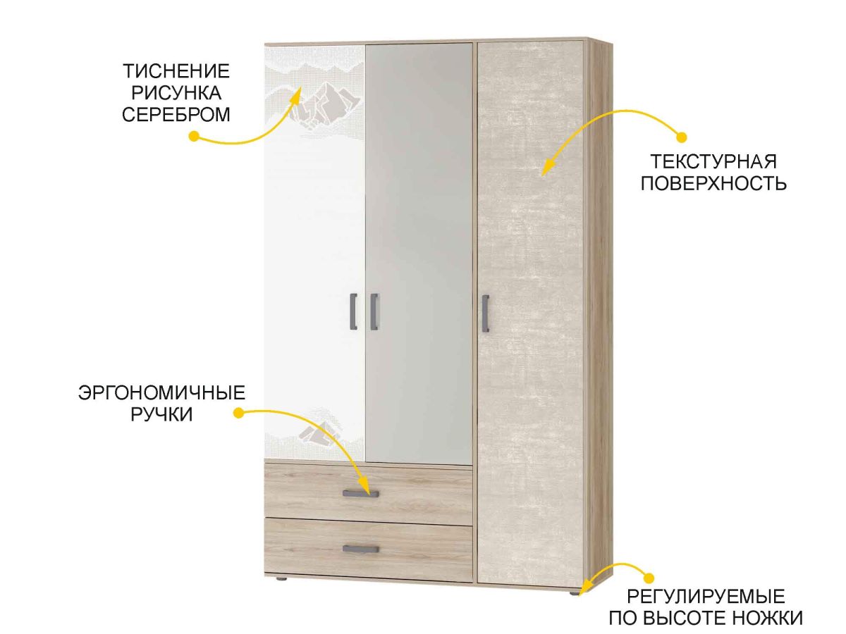 Шкаф трехдверный с зеркалом Эверест 500.28