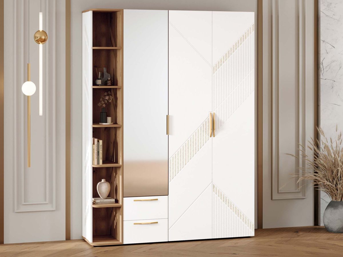 Шкаф трехдверный с зеркалом в комплекте «Монако 403 350» является частью модульной программы «Монако 403». Коллекция «Монако 403» - это образец элегантного стиля и утонченного вкуса. Сочетание матовой белоснежной поверхности фасадов с благородной древесной текстурой «Дуб Вотан» создает особую атмосферу гармонии.