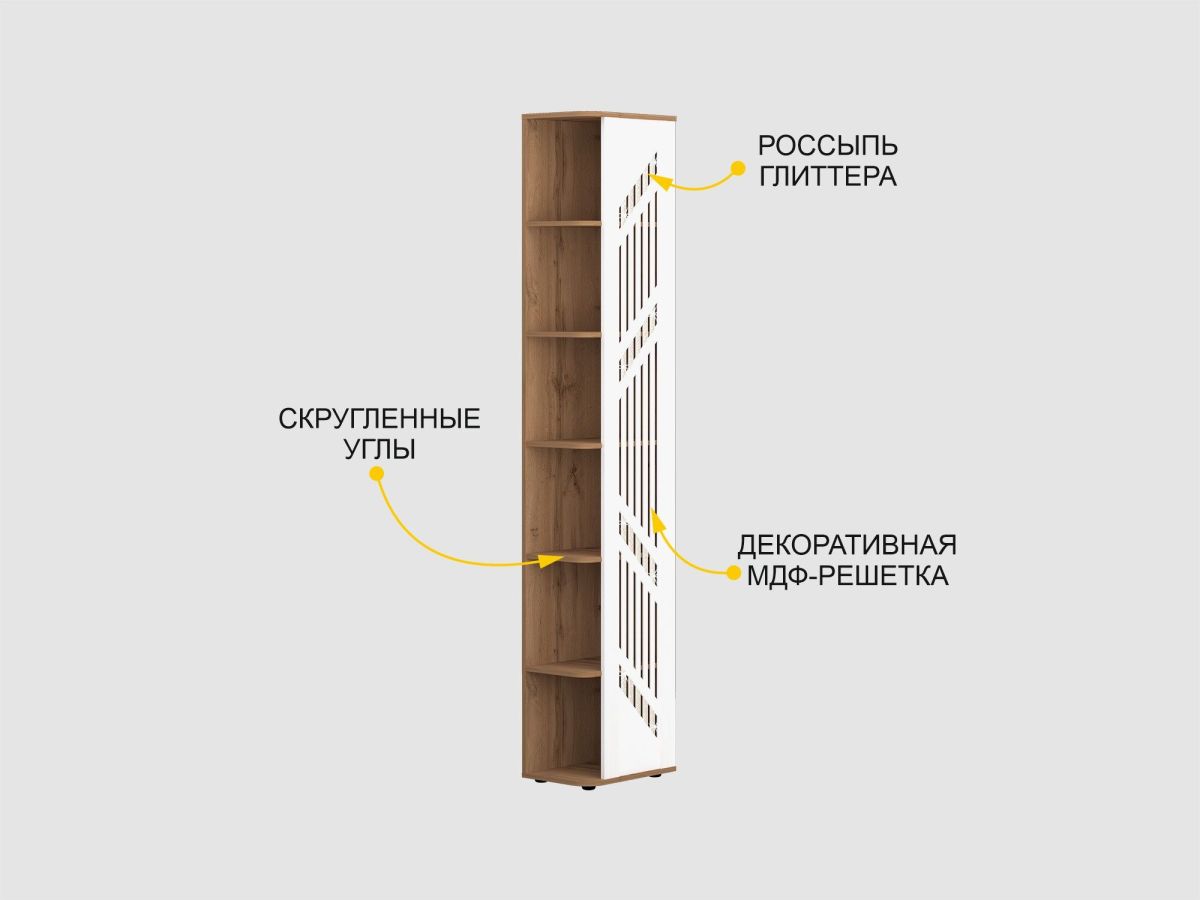 • Резная решетка из МДФ с россыпью глиттера визуально делает конструкцию изделия более легкой и добавляет изящности.