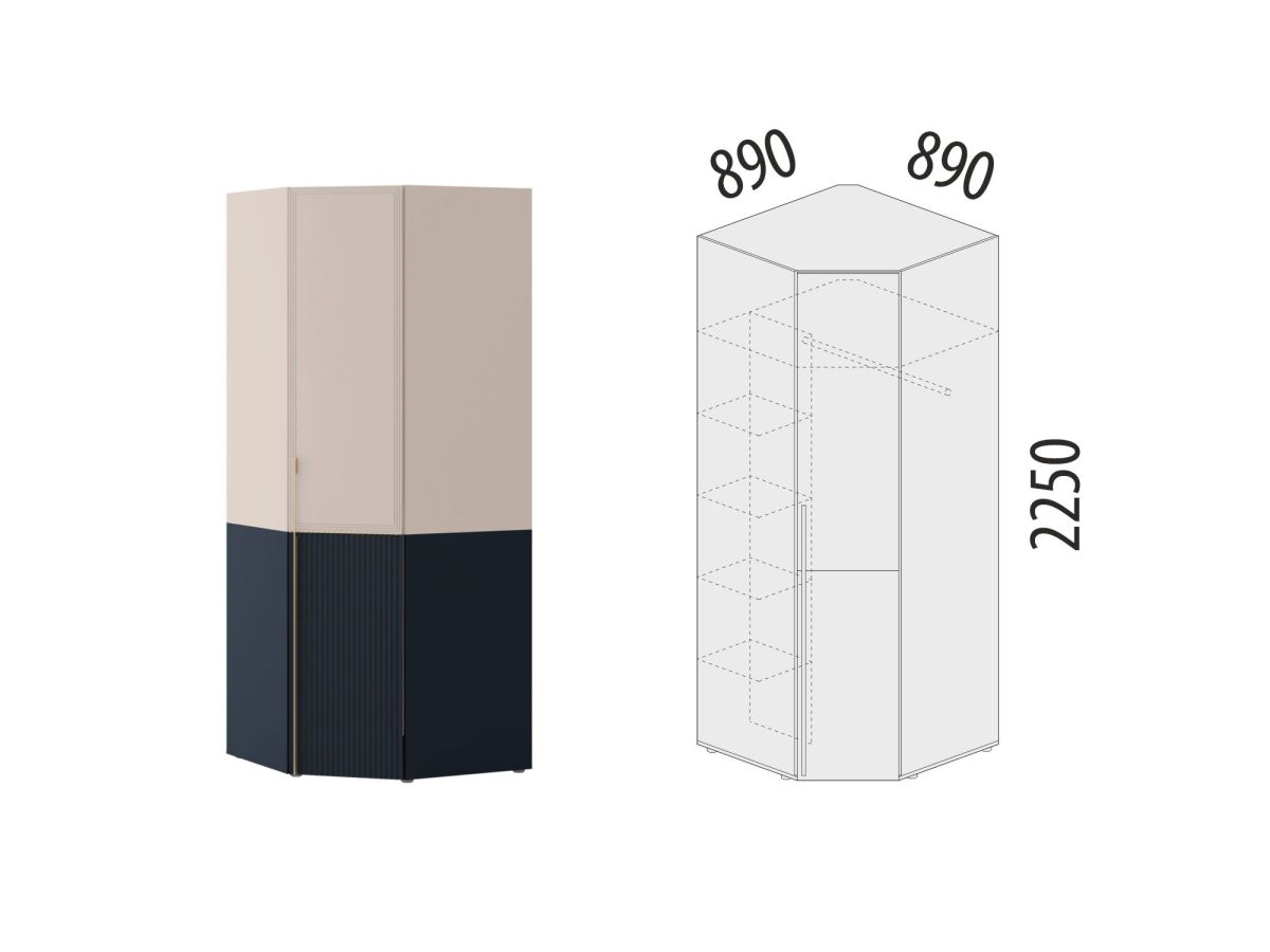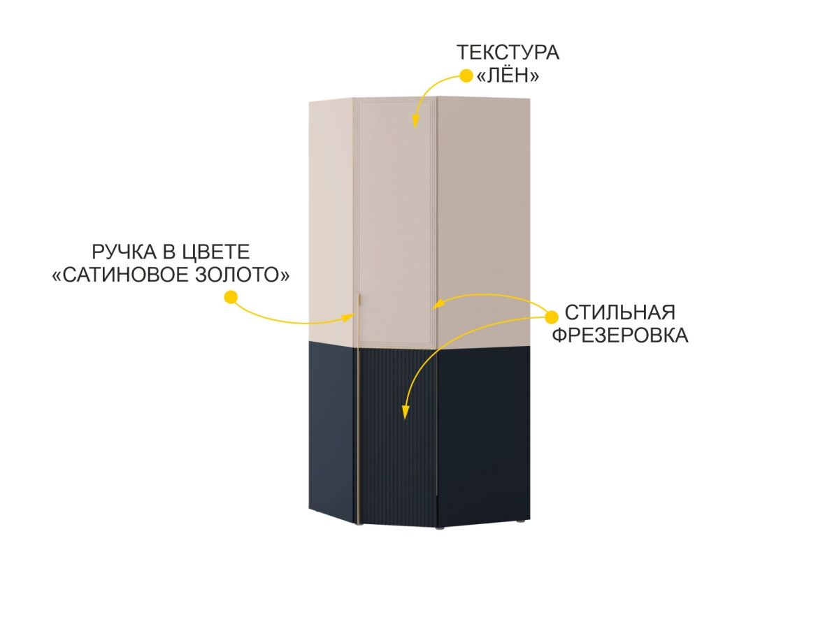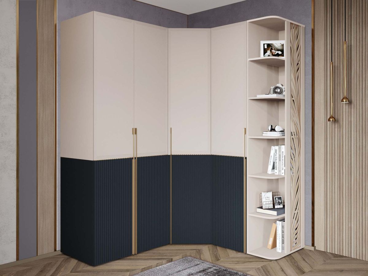 Шкаф угловой «Флоренция 905.08» является частью модульной программы «Флоренция». Спальня «Флоренция» – это образец изящности и современной роскоши. Цвета «Кашемир» и «Индиго» образуют стильный и теплый дуэт: светлый тон наполняет пространство мягкостью, а насыщенный темно-синий придает интерьеру глубину и изысканность. Оригинальные элементы в цвете «сатиновое золото» и элегантная фрезеровка подчеркивают утонченный дизайн коллекции.
