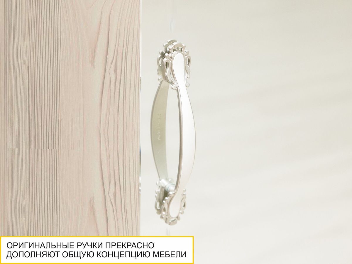 - Зеркало в пол с аккуратной огранкой визуально увеличивает пространство и добавляет больше света. Зеркало толщиной 4 мм прочно крепится к дверце. Гравировка на зеркале придает мебели элегантный внешний вид.