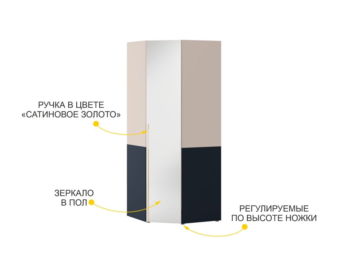 Шкаф угловой с зеркалом «Флоренция 905.09» является частью модульной программы «Флоренция». Спальня «Флоренция» – это образец изящности и современной роскоши. Цвета «Кашемир» и «Индиго» образуют стильный и теплый дуэт: светлый тон наполняет пространство мягкостью, а насыщенный темно-синий придает интерьеру глубину и изысканность.