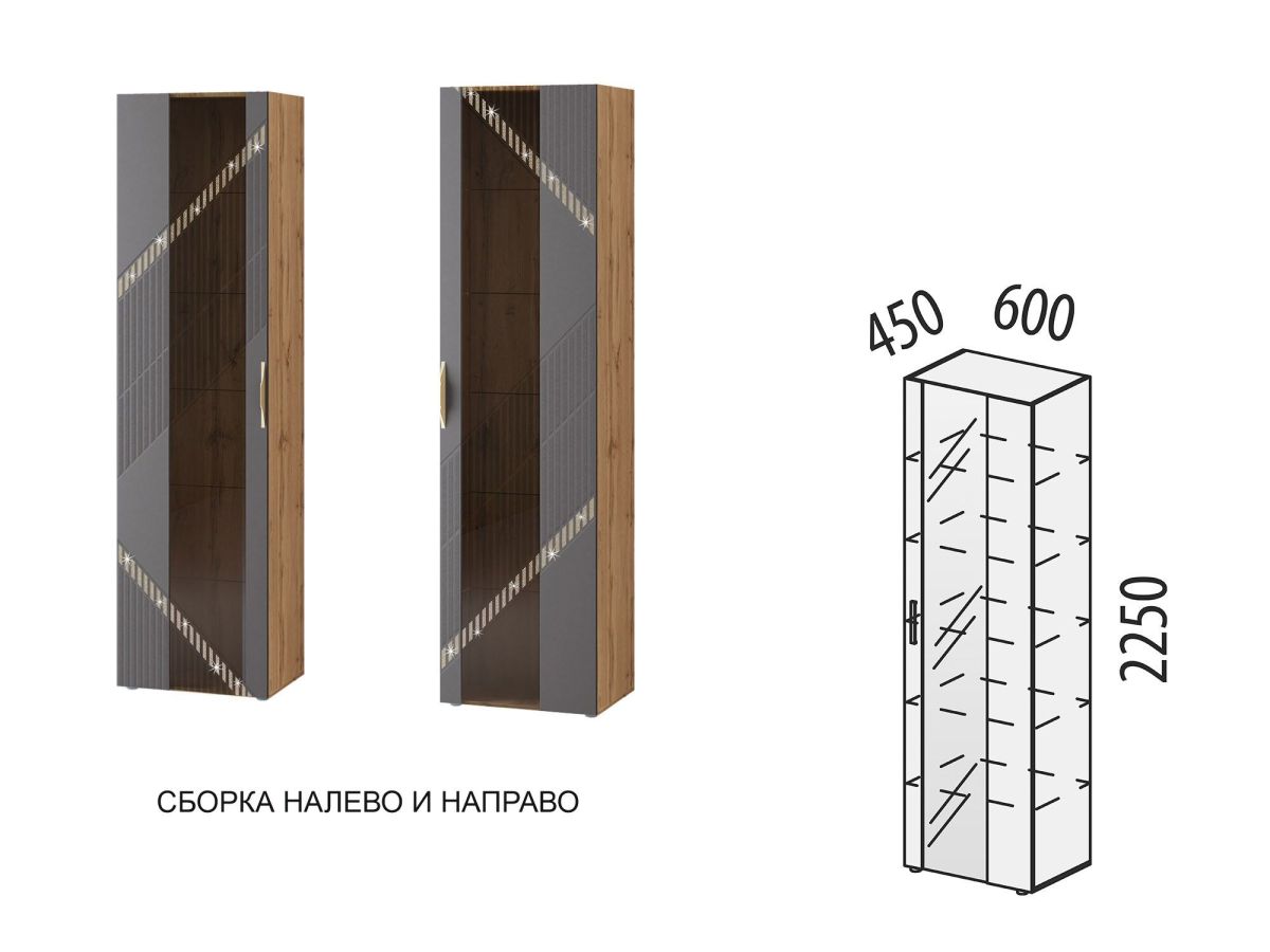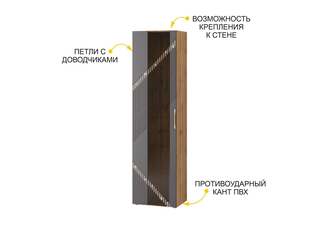 Шкаф-витрина «Монако 605.06» является частью модульной серии «Монако 605». Коллекция «Монако» - это образец элегантного стиля и утонченного вкуса. Сочетание матовой графитовой поверхности фасадов с благородной древесной текстурой «Дуб Вотан» создает особую атмосферу гармонии и комфорта.