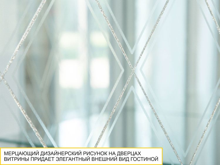 - Стеклянная дверца модуля декорирована мерцающим дизайнерским рисунком с кристаллами премиум-класса, что придает изделию элегантный внешний вид. Покрытие декора устойчиво к истиранию и не выцветает со временем.