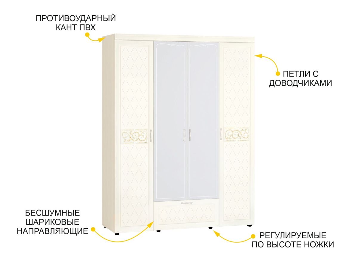 Спальный гарнитур «Тиффани 93 103» является частью модульной программы «Тиффани». Коллекция «Тиффани» - символ классического стиля и незабываемого шарма. Нежные светлые фасады и изысканность декора - отличительная черта коллекции. Ажурные декоративные элементы и кристаллы придают уникальность коллекции.