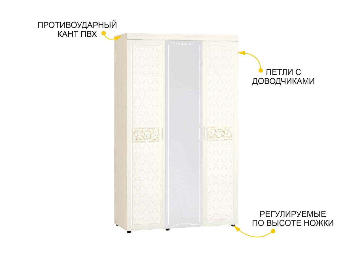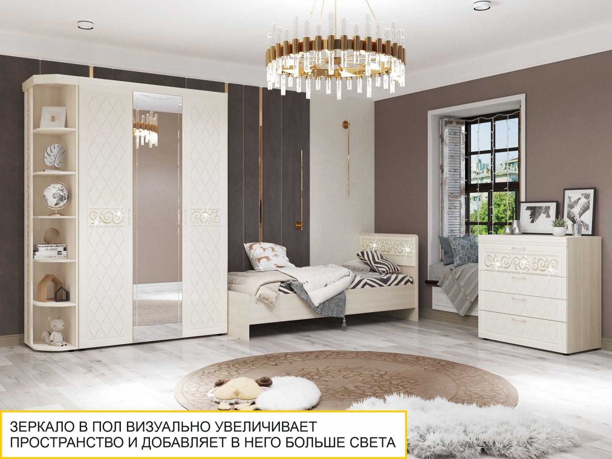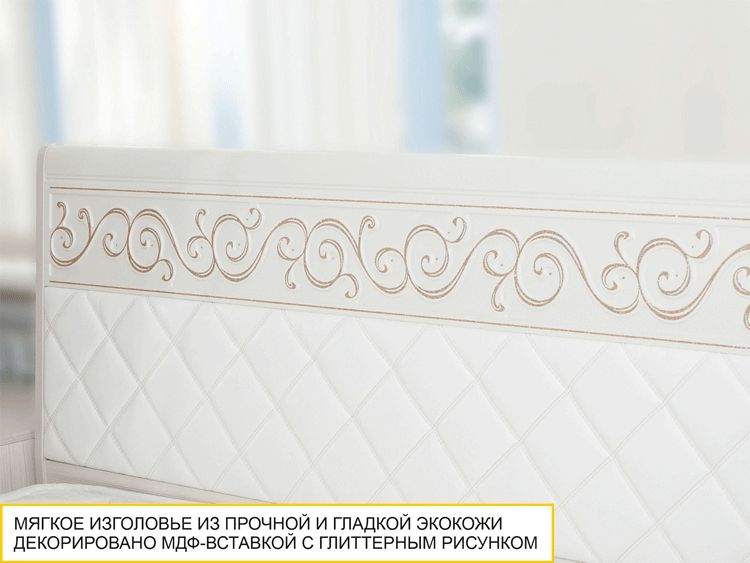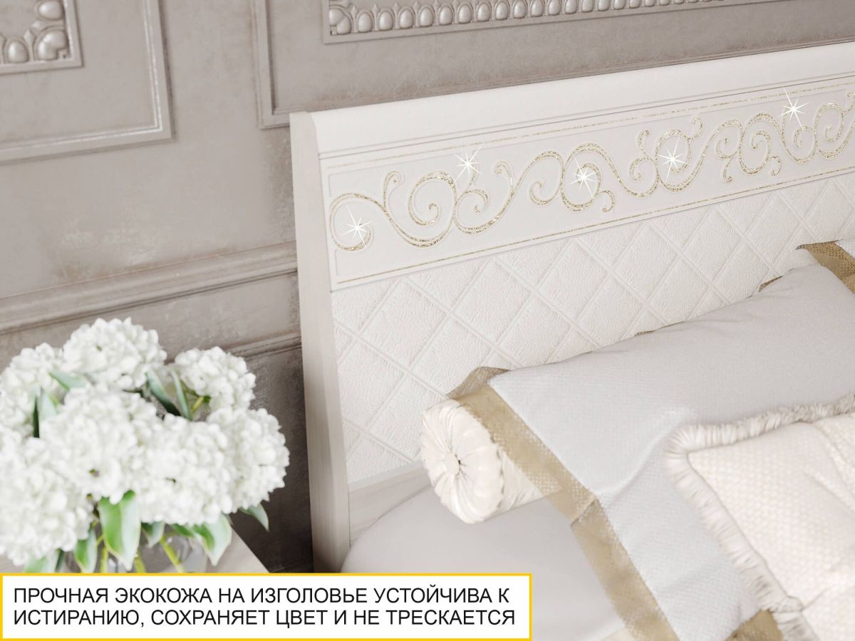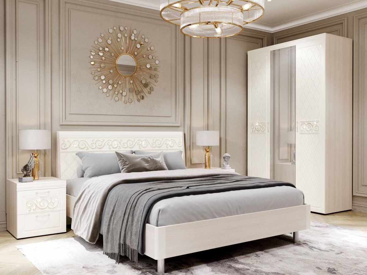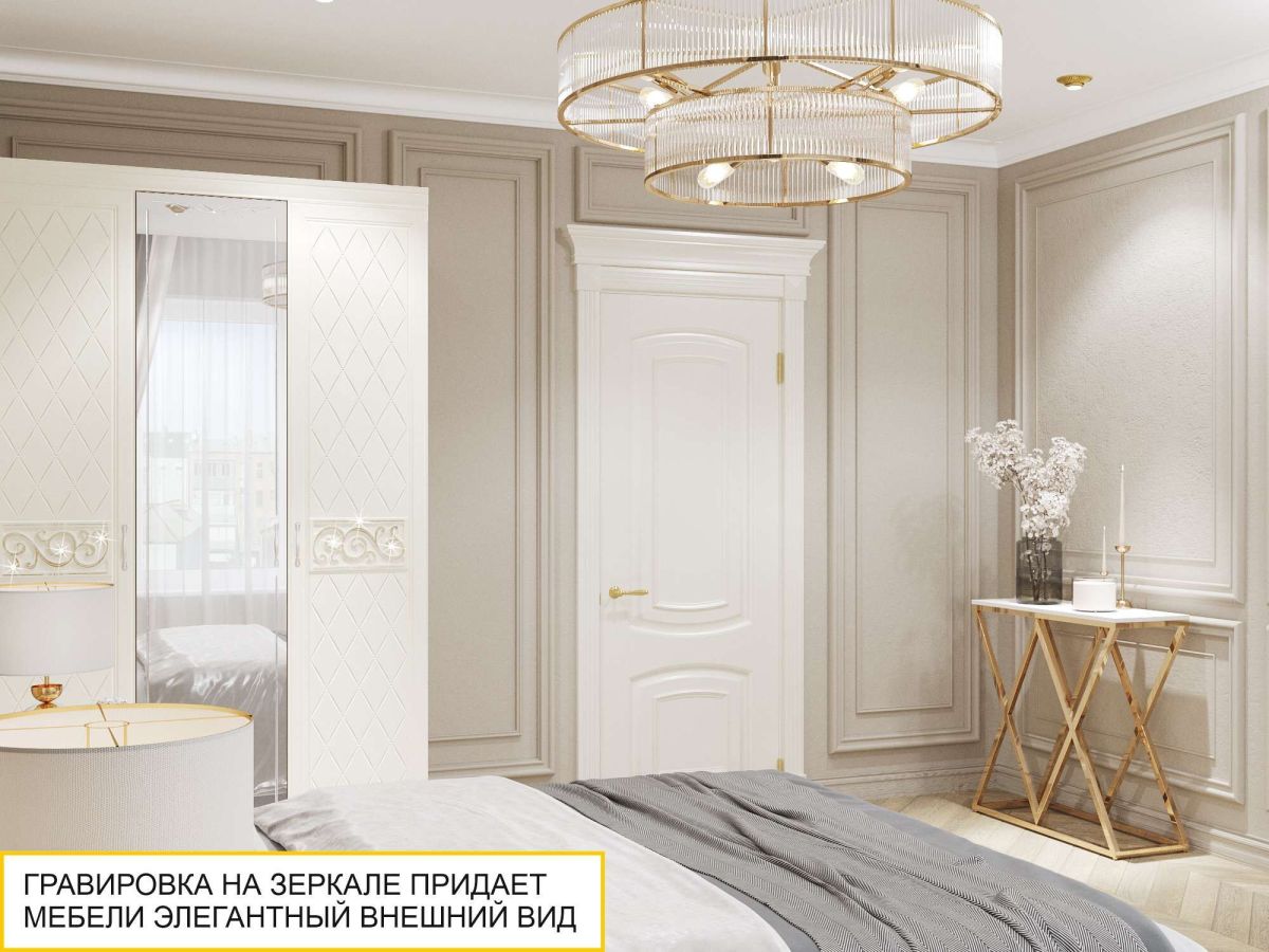 Спальный гарнитур «Тиффани 93 108» является частью модульной программы «Тиффани». Коллекция «Тиффани» - символ классического стиля и незабываемого шарма. Нежные светлые фасады и изысканность декора - отличительная черта коллекции. Ажурные декоративные элементы и кристаллы придают уникальность коллекции.