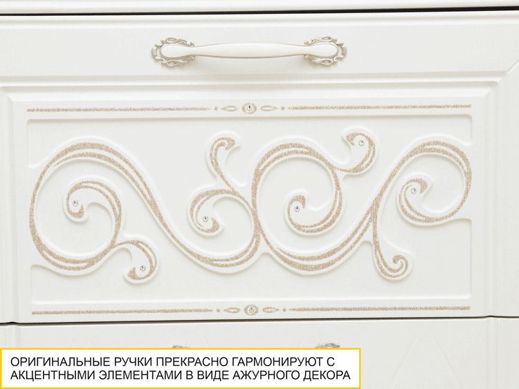 - Оригинальные ручки прекрасно гармонируют с акцентными элементами в виде ажурного декора.