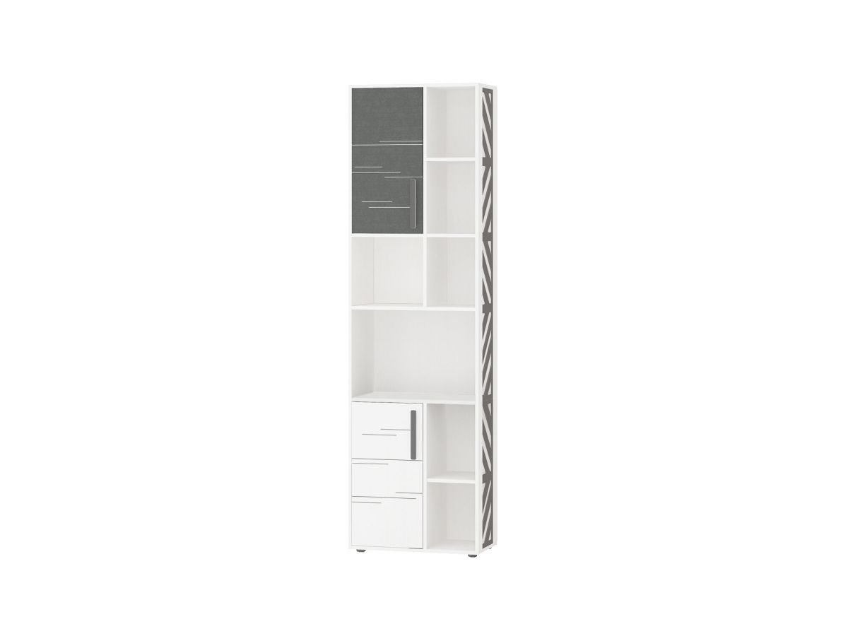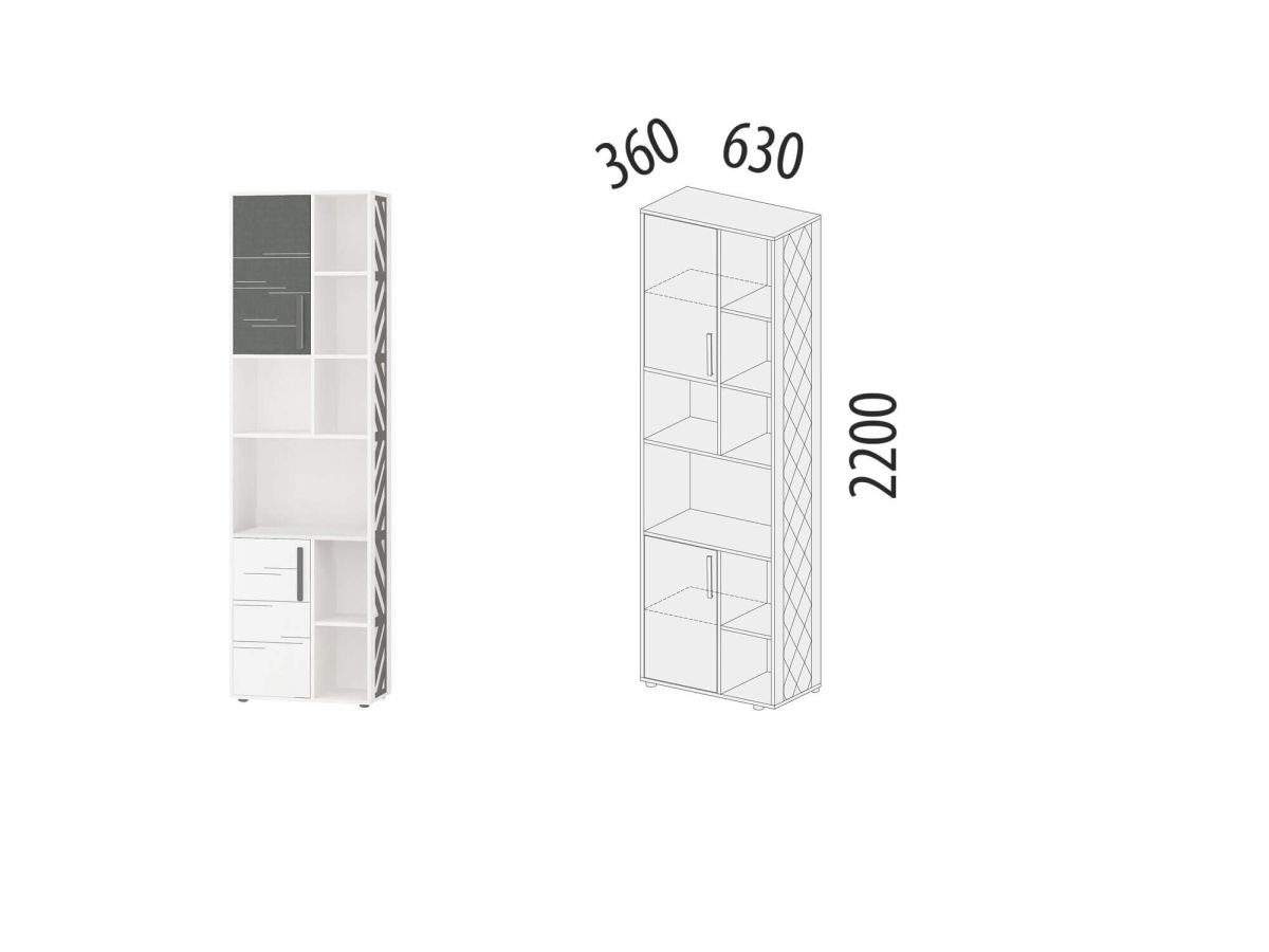 Модуль состоит из открытых и закрытых полок и является удачным решением для организации хранения книг, документов и других полезных мелочей. Стеллаж можно использовать не только в сочетании с другими модулями, но и как отдельный предмет мебели.