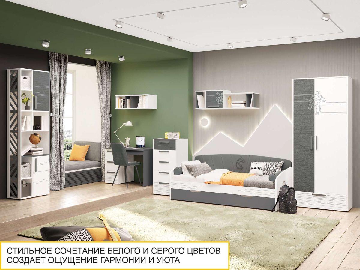 Стеллаж «Аляска 501.33» является частью модульной программы «Аляска». Эта коллекция представляет собой новый уровень комфорта и стиля. Изысканный минимализм с акцентом на функциональность делает эту детскую идеальным выбором для мечтательных и независимых подростков.