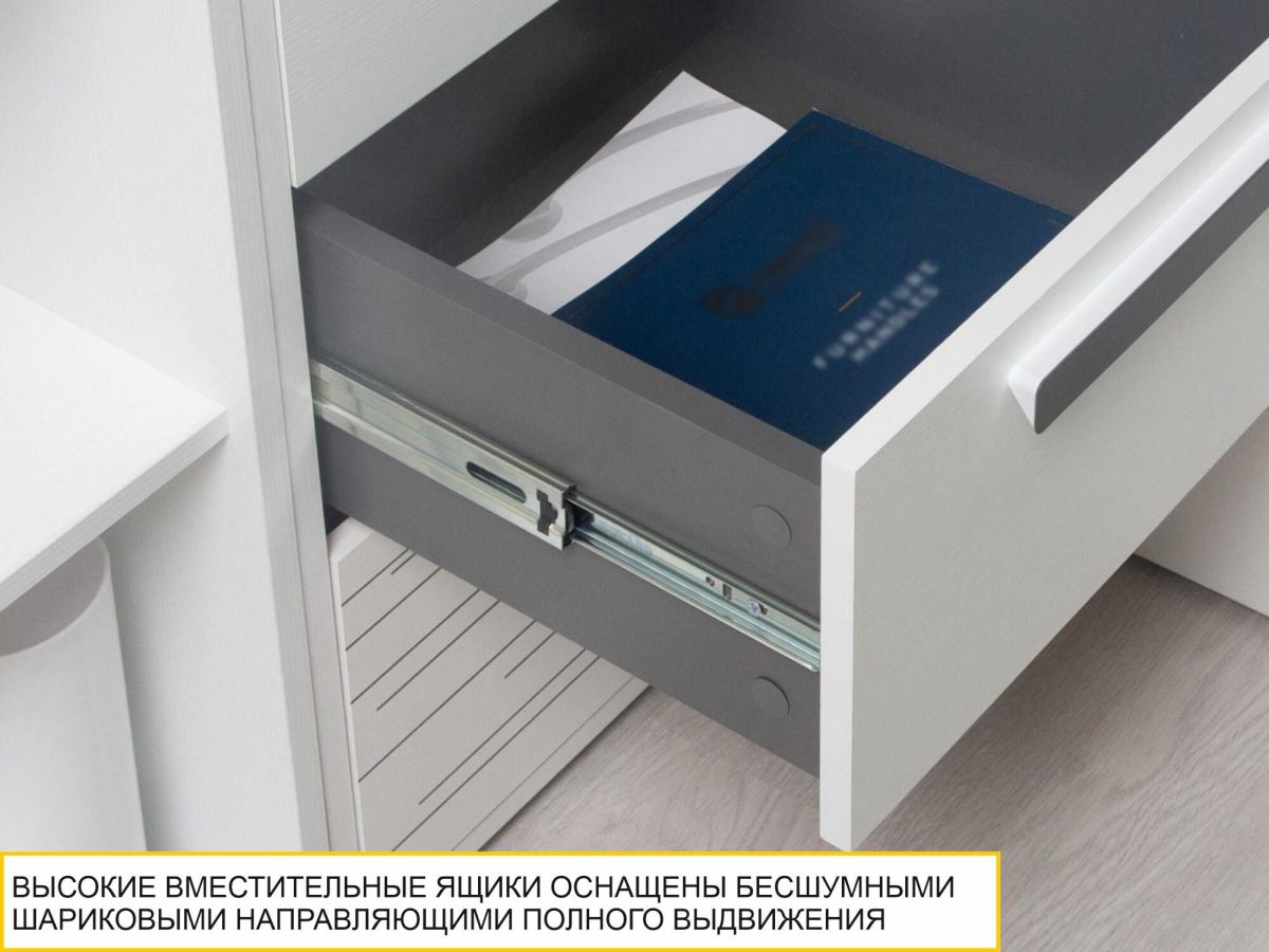 - Высокие вместительные ящики оснащены бесшумными шариковыми направляющими полного выдвижения. Качественная фурнитура гарантирует удобство и долговечность.