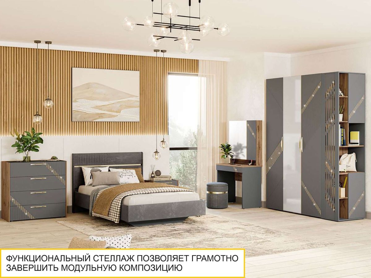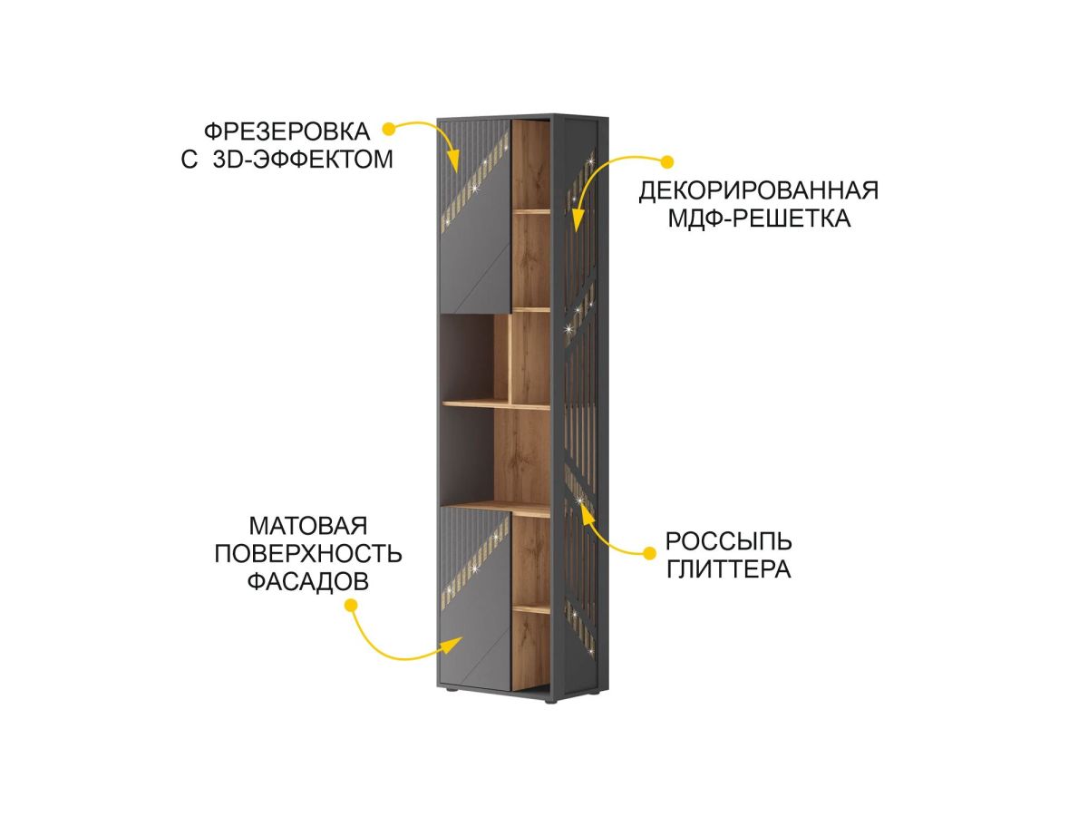 Стеллаж «Монако 902.57» является частью модульной программы «Монако 902». Коллекция «Монако» - это образец элегантного стиля и утонченного вкуса. Сочетание матовой графитовой поверхности фасадов с благородной древесной текстурой создает особую атмосферу гармонии и комфорта.