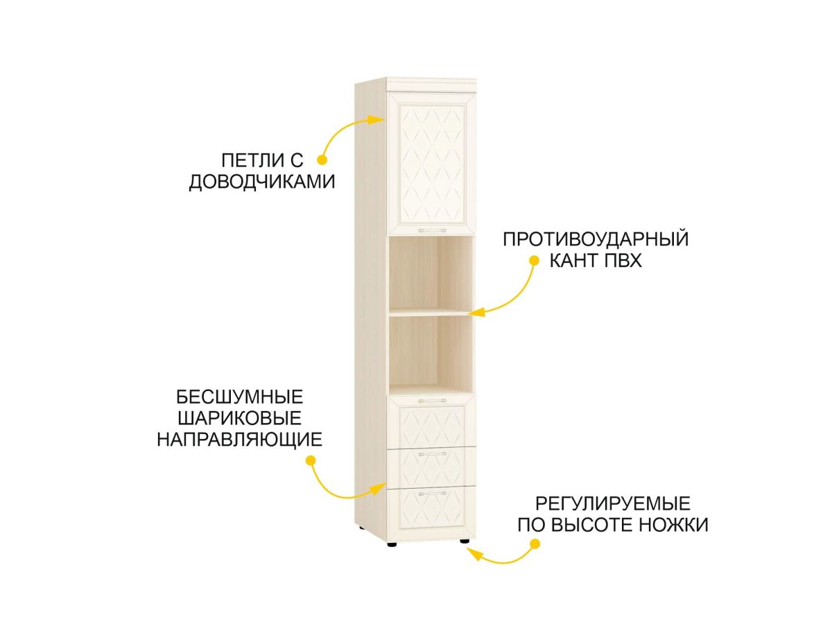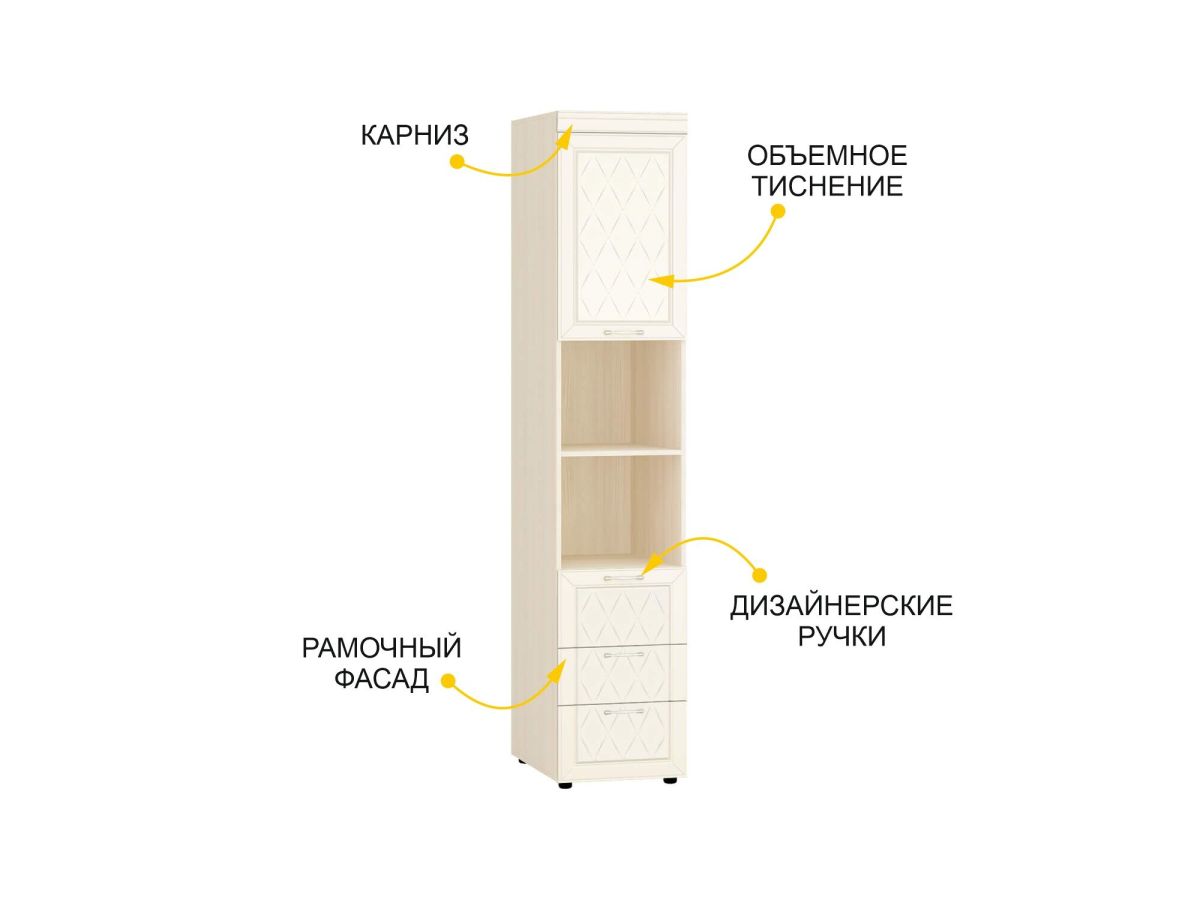 Стеллаж «Тиффани 93.56» является частью модульной программы «Тиффани». Коллекция «Тиффани» - символ классического стиля и незабываемого шарма. Нежные светлые фасады и изысканность декора - отличительная черта коллекции. Ажурные декоративные элементы и кристаллы придают уникальность коллекции.