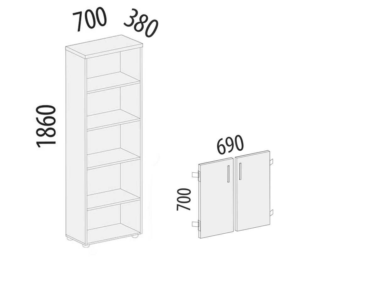 Стеллаж «Рубин 40 532» является частью коллекции мебели для офиса «Рубин». Укомплектован дверцами с металлическими ручками. Модуль разделён полкой на пять секции. Ножки регулируются по высоте, что позволяет при установке компенсировать возможные неровности пола.