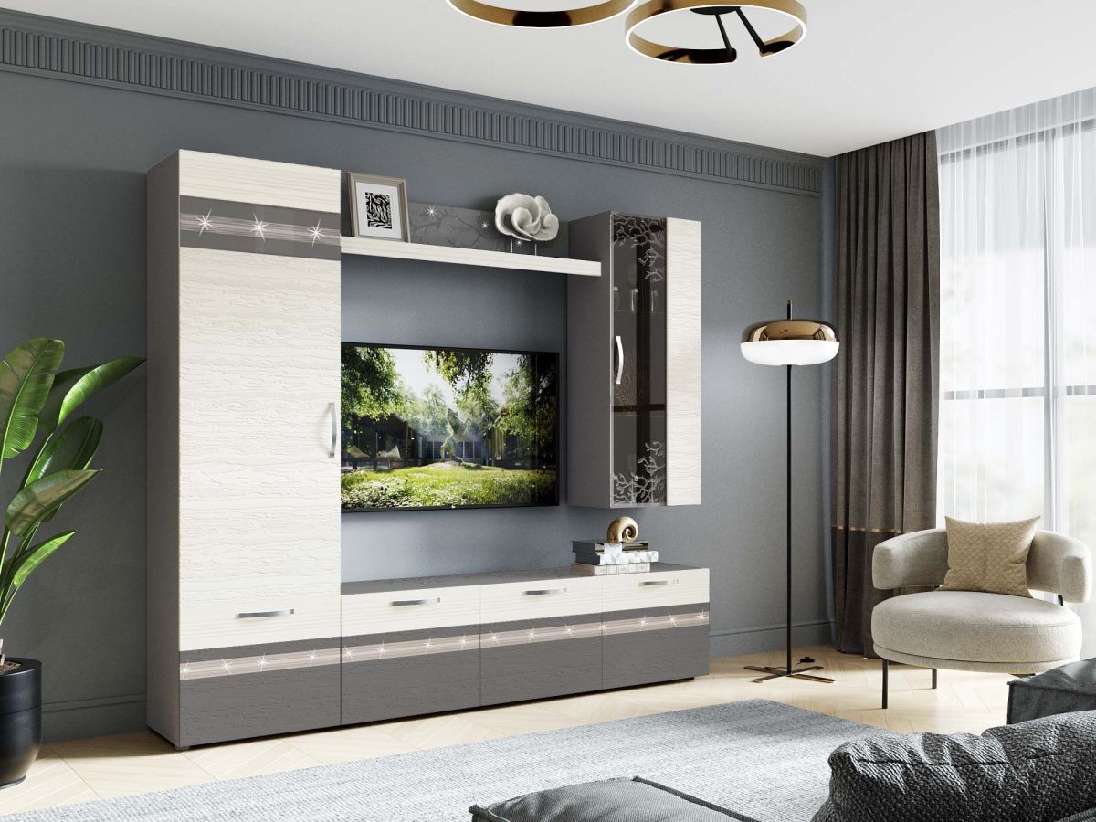 Стенка для гостиной «Графит 604 403» является частью модульной программы «Графит». Коллекция «Графит» – пример совмещения модных тенденций и универсальности. Имитация коры на фасадах и оригинальный рисунок дерева подчеркивают популярное направление экостиля. Атмосфера спокойствия, умиротворения и мудрости – это то, чего зачастую не хватает городским жителям в череде насыщенных трудовых будней. Сочетание нежного цвета ванили и глубокого серого является актуальным цветовым решением в дизайне.