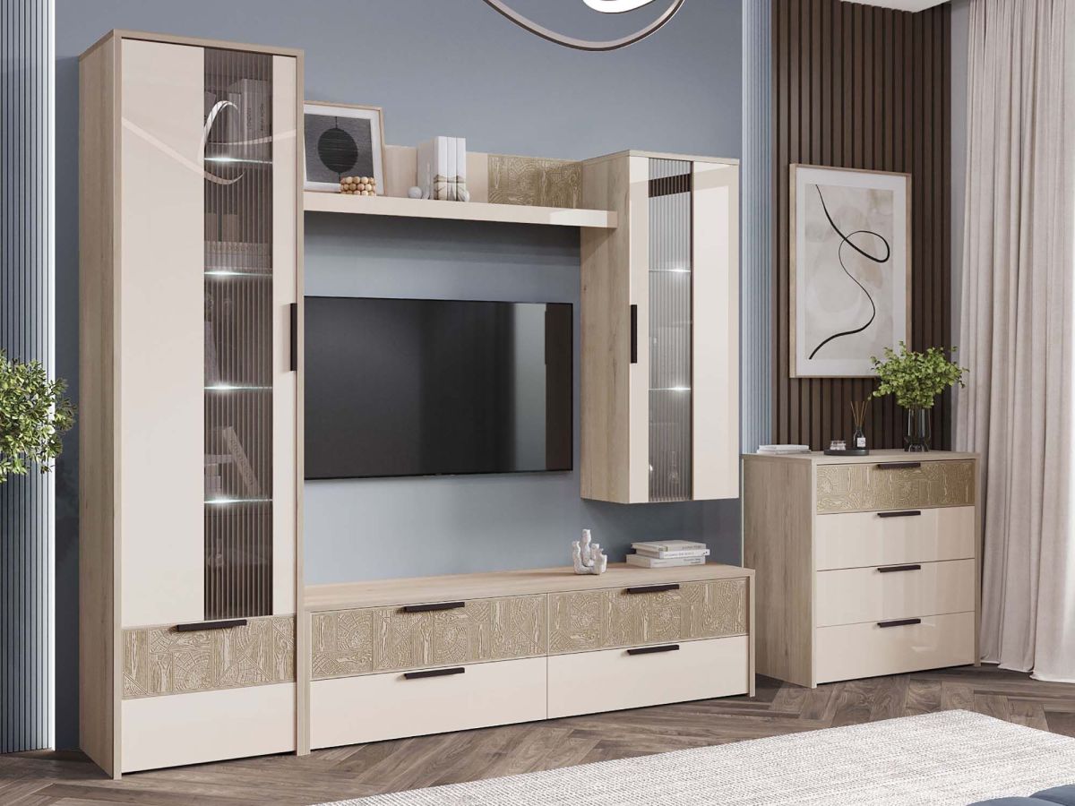 Стенка для гостиной «Кашемир 608 404» является частью модульной серии «Кашемир». Гостиная «Кашемир» - символ достатка и комфорта. Сочетание натуральных кашемировых оттенков с тактильно приятными фактурами древесного декора - отличительная черта этой коллекции. Лаконичные формы и мягкие цвета, ничего лишнего, только спокойствие и уют.