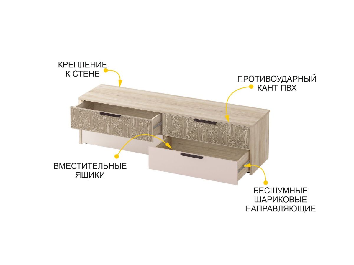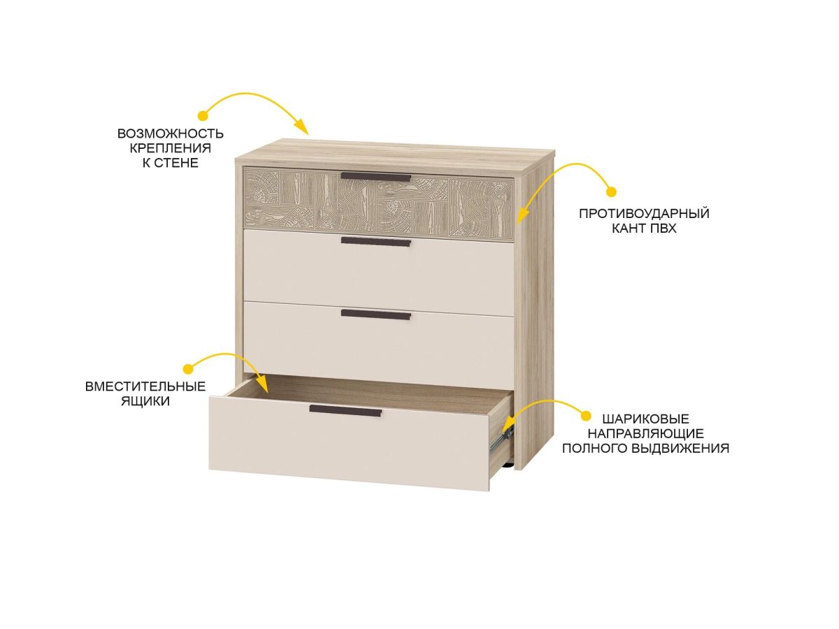 • Высокие выдвижные ящики оснащены шариковыми направляющими, которые гарантируют плавный бесшумный ход и длительный срок эксплуатации изделия. Полное выдвижение ящиков обеспечивает комфорт, позволяет быстро и легко найти необходимые вещи.