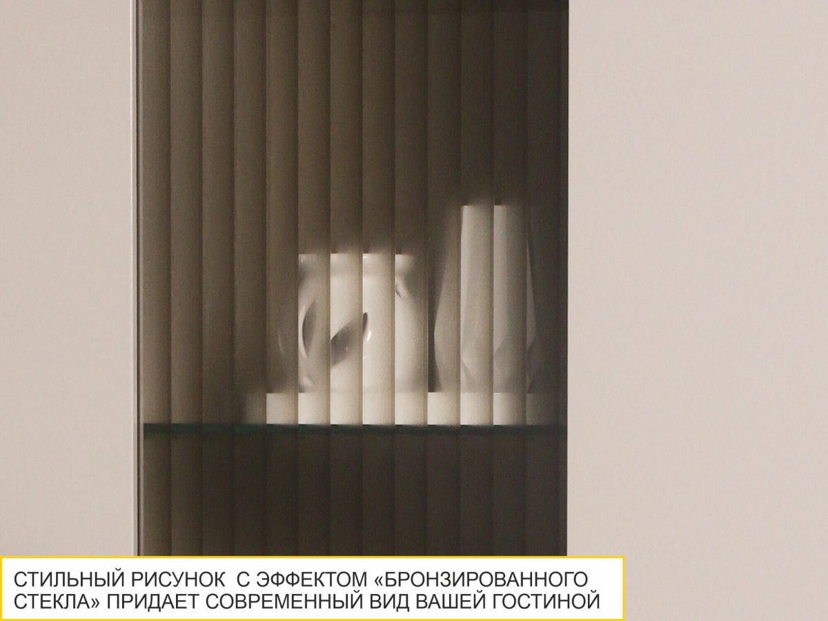 • Стильный рисунок витрины с эффектом «бронзированного» стекла подчеркивает современный стиль коллекции.