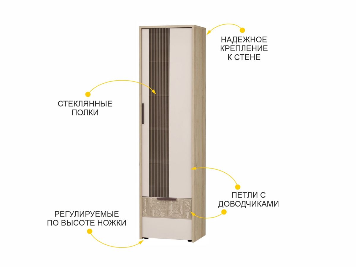 • Крепление к стене обеспечивает безопасную эксплуатацию изделия (крепежная фурнитура в комплекте). Оно необходимо для предотвращения опрокидывания мебели при открывании дверцы.