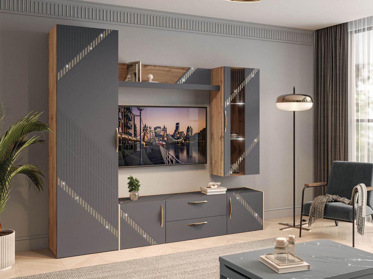 Стенка для гостиной «Монако 605 403» - это образец элегантного стиля и утонченного вкуса. Сочетание матовой графитовой поверхности фасадов с благородной древесной текстурой создает особую атмосферу гармонии и комфорта.