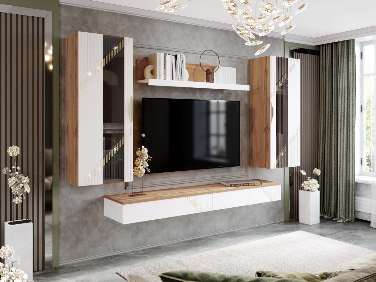 Стенка для гостиной «Монако 606 405» - это образец элегантного стиля и утонченного вкуса. Сочетание матовой белоснежной поверхности фасадов с благородной древесной текстурой создает особую атмосферу гармонии и комфорта.