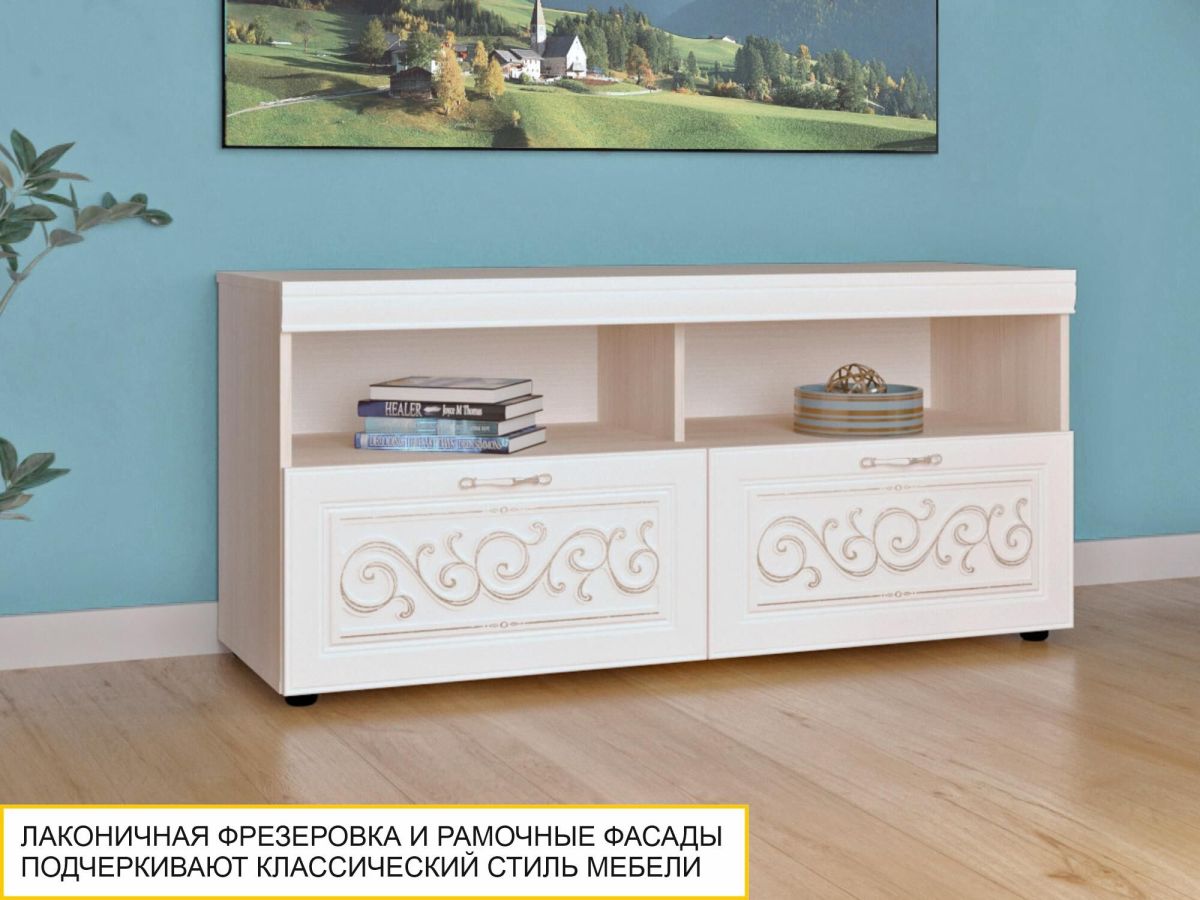 - Высокие вместительные ящики ТВ-тумбы укомплектованы бесшумными шариковыми направляющими полного выдвижения.