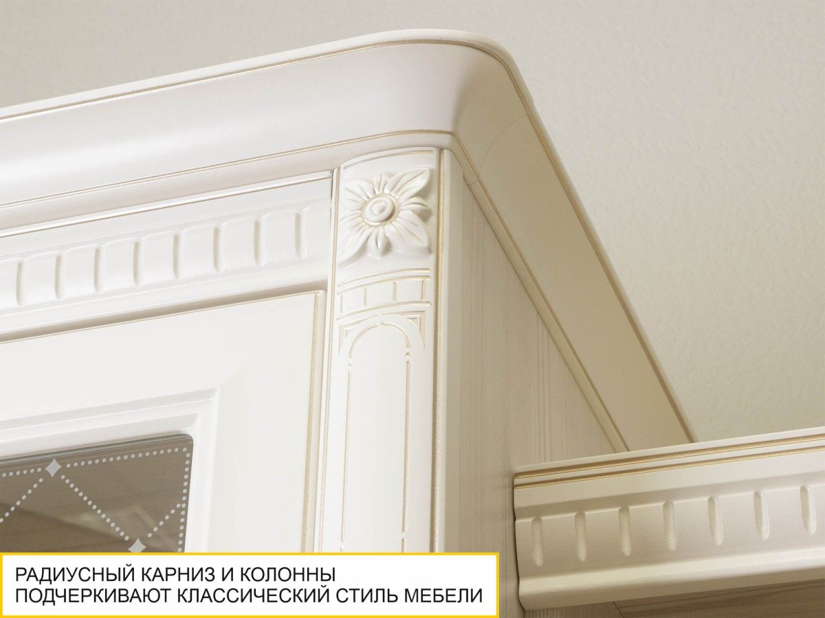- Радиусный карниз и колонны подчеркивают классический стиль мебели, добавляют ей элегантности.