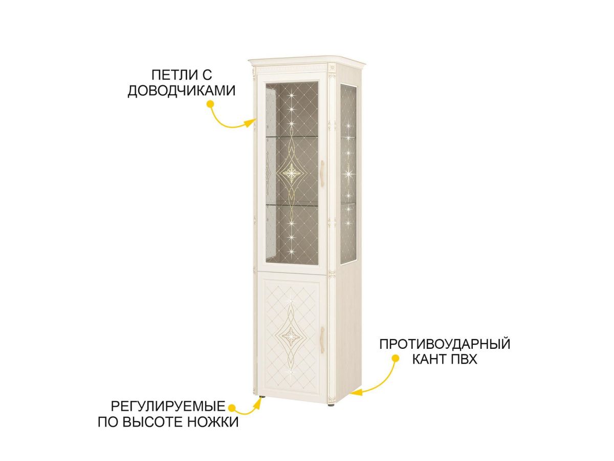- В шкаф-витрину Вы можете дополнительно установить декоративную подсветку и эффектно преобразить пространство.
