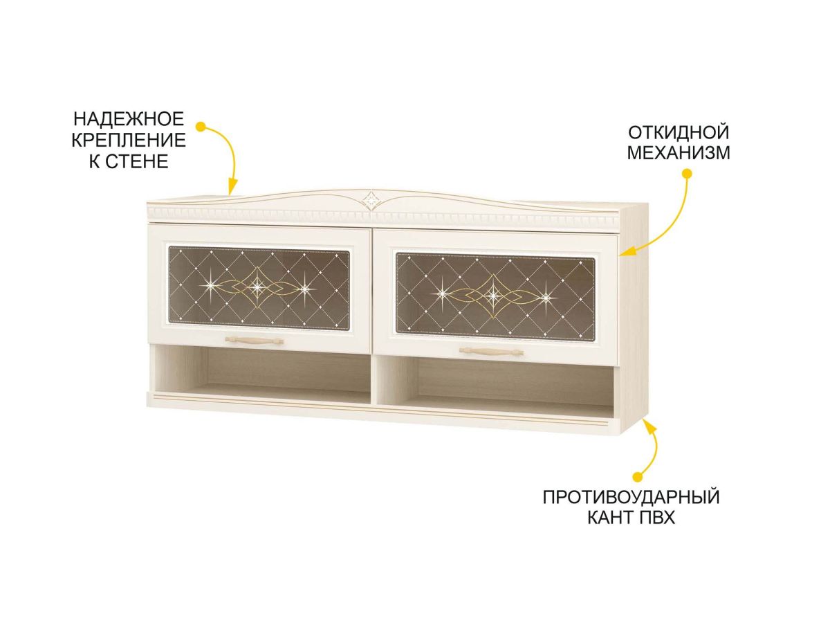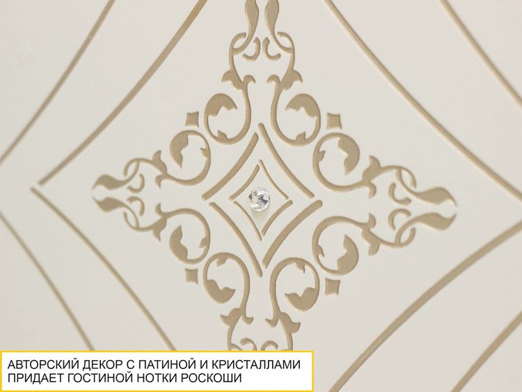 - Фасады украшены авторским декором с патиной и кристаллами примиум-класса, что придает интерьеру нотки роскоши.