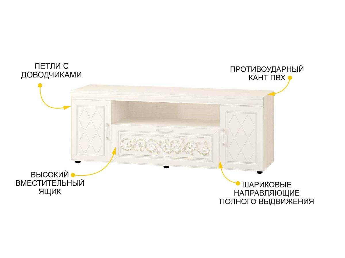 • Высокий вместительный ящик ТВ-тумбы укомплектован бесшумными шариковыми направляющими полного выдвижения.