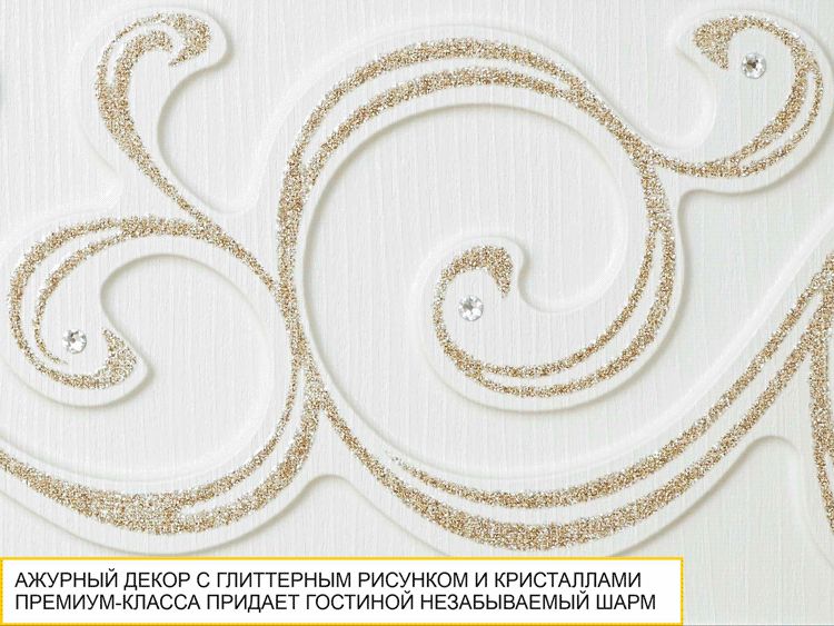 • Ажурный декоративный элемент, дополненный глиттерным рисунком и кристаллами премиум-класса, придает гостиной незабываемый шарм.