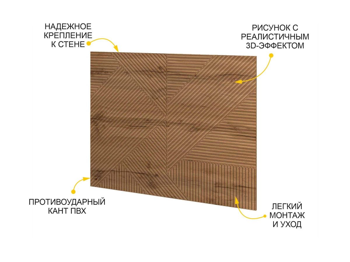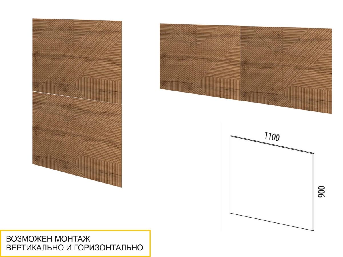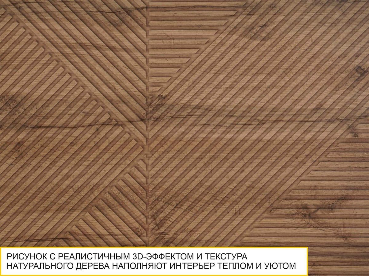 - Панель декорирована рисунком с реалистичным 3D-эффектом. Он делает интерьер более свежим, наполняет его жизнью, а натуральный медовый цвет дерева «Дуб Вотан» добавляет комфорта и тепла.