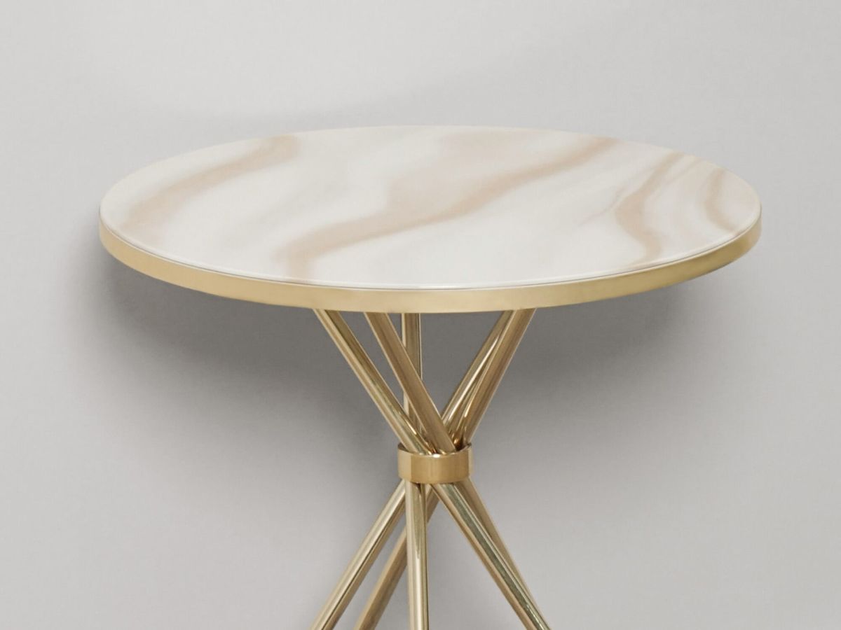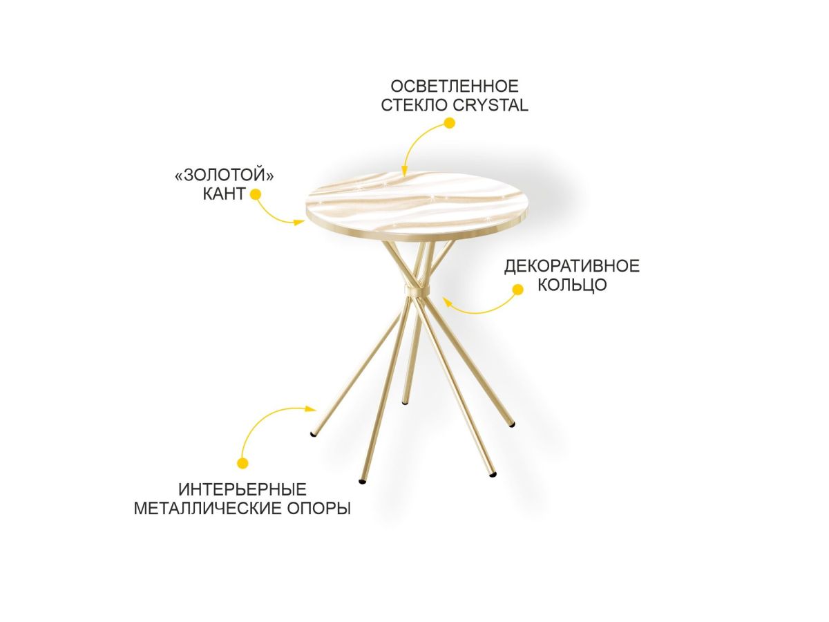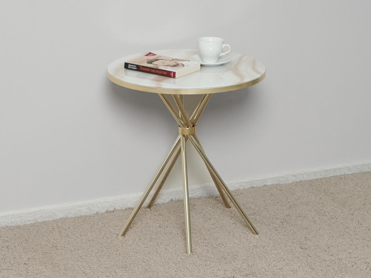 «Агат 41 Белый мрамор/Золото» – это стильный и компактный журнальный столик, который станет ярким акцентом в интерьере гостиной.