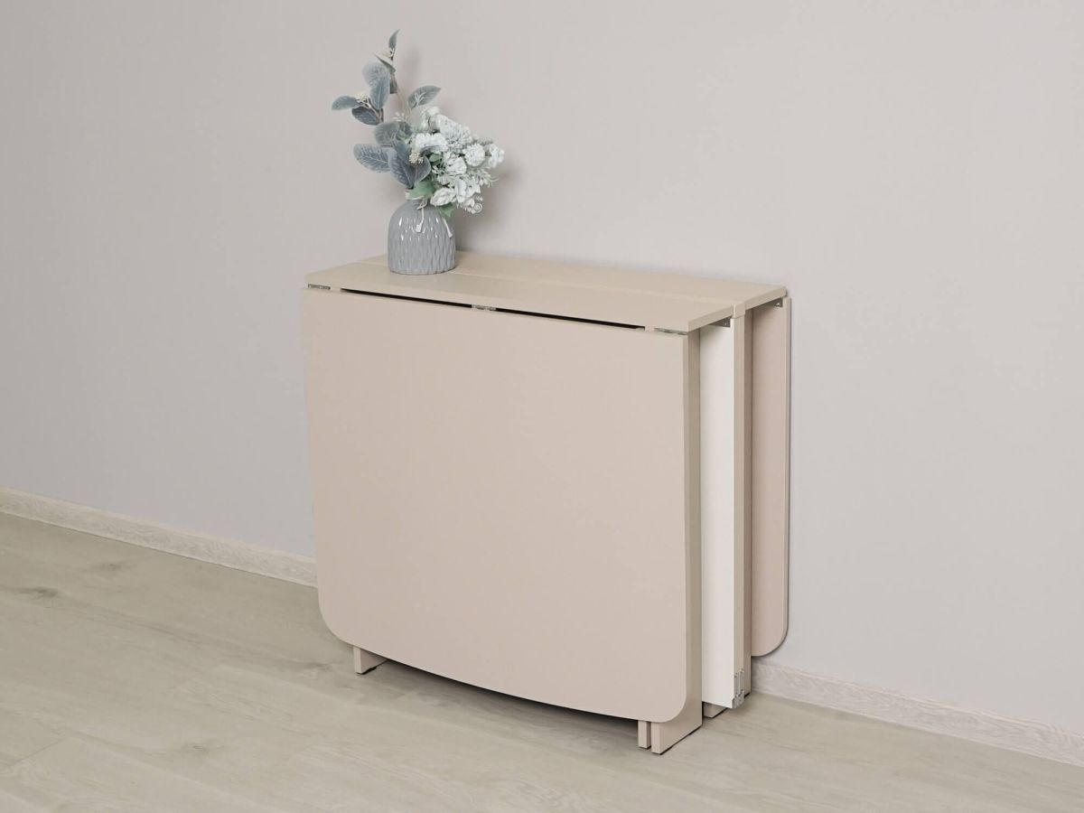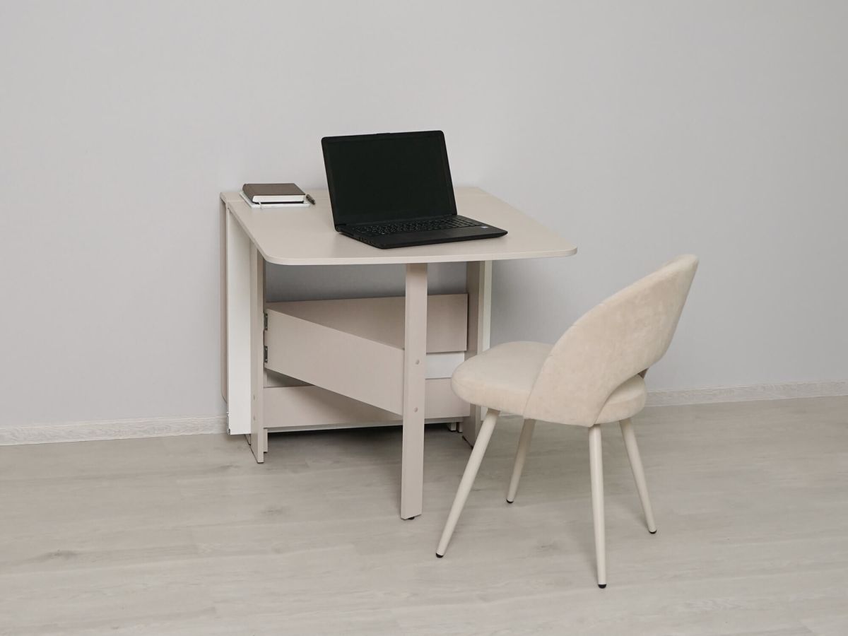 - стол с одной разложенной столешницей размером 101х80 см может использоваться как небольшой обеденный стол или в качестве письменного стола в рабочей зоне;