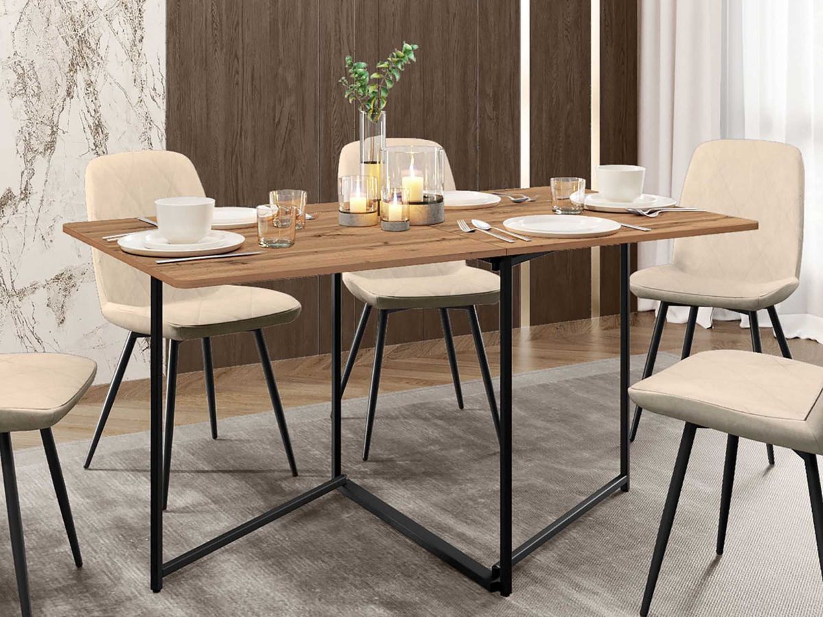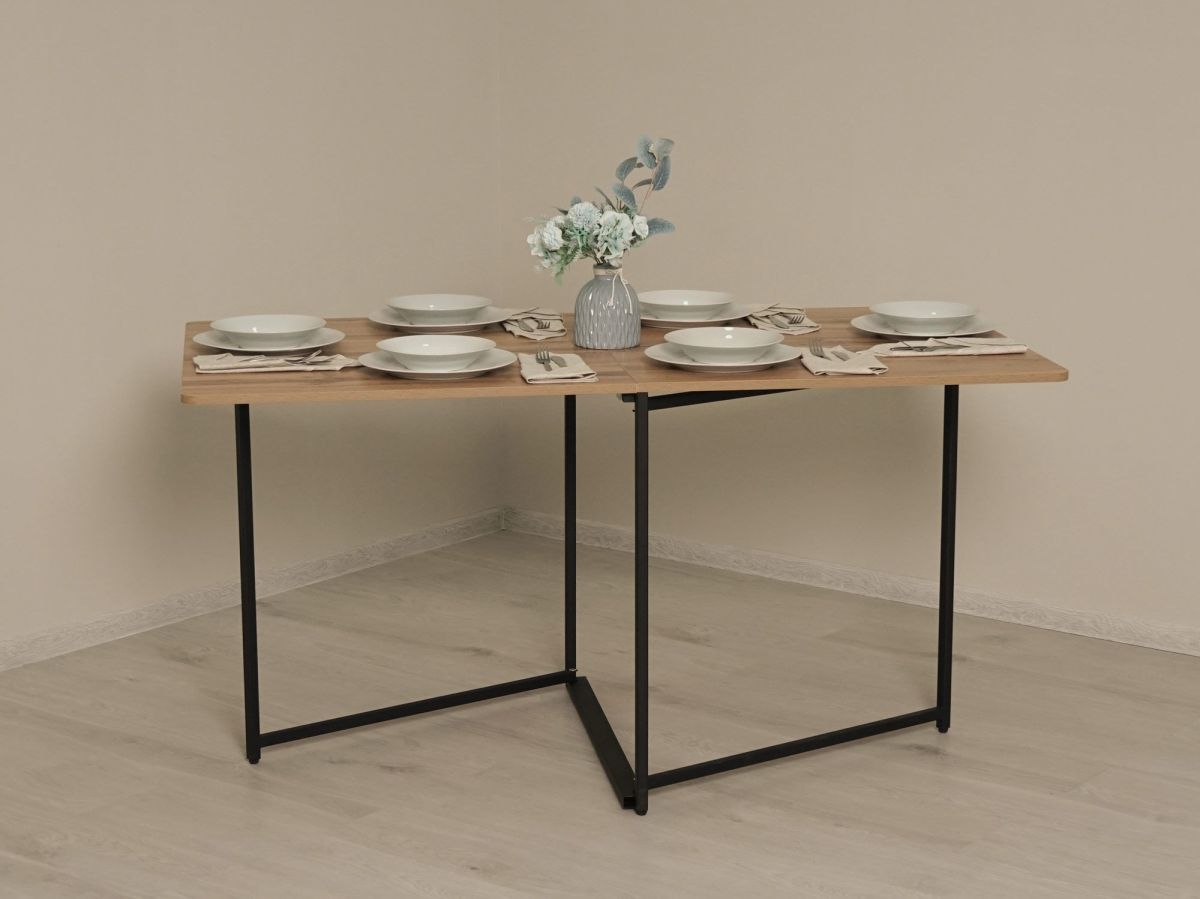 «Колибри 16 Дуб Вотан/Черный» – это идеальное решение для экономии пространства и создания стильной обеденной зоны. Функциональный стол-книжка выполнен в благородном оттенке натурального дерева.