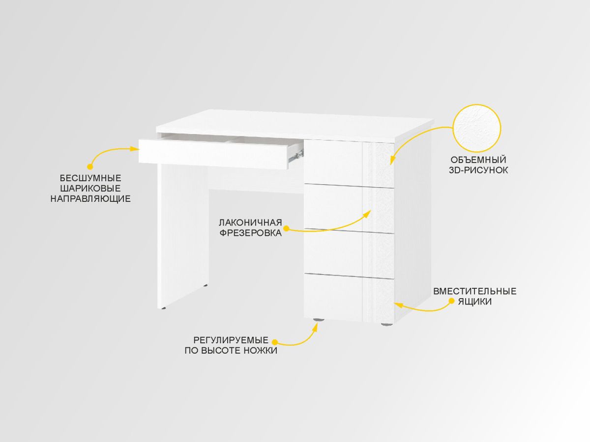 Стол компьютерный «Николь 901.26» является частью модульной программы «Николь». Белоснежные матовые фасады - визитная карточка этой коллекции. Конструктив и дизайн модели продуман до мелочей. Стол можно использовать не только в сочетании с другими модулями спальни, но и как отдельный предмет мебели.