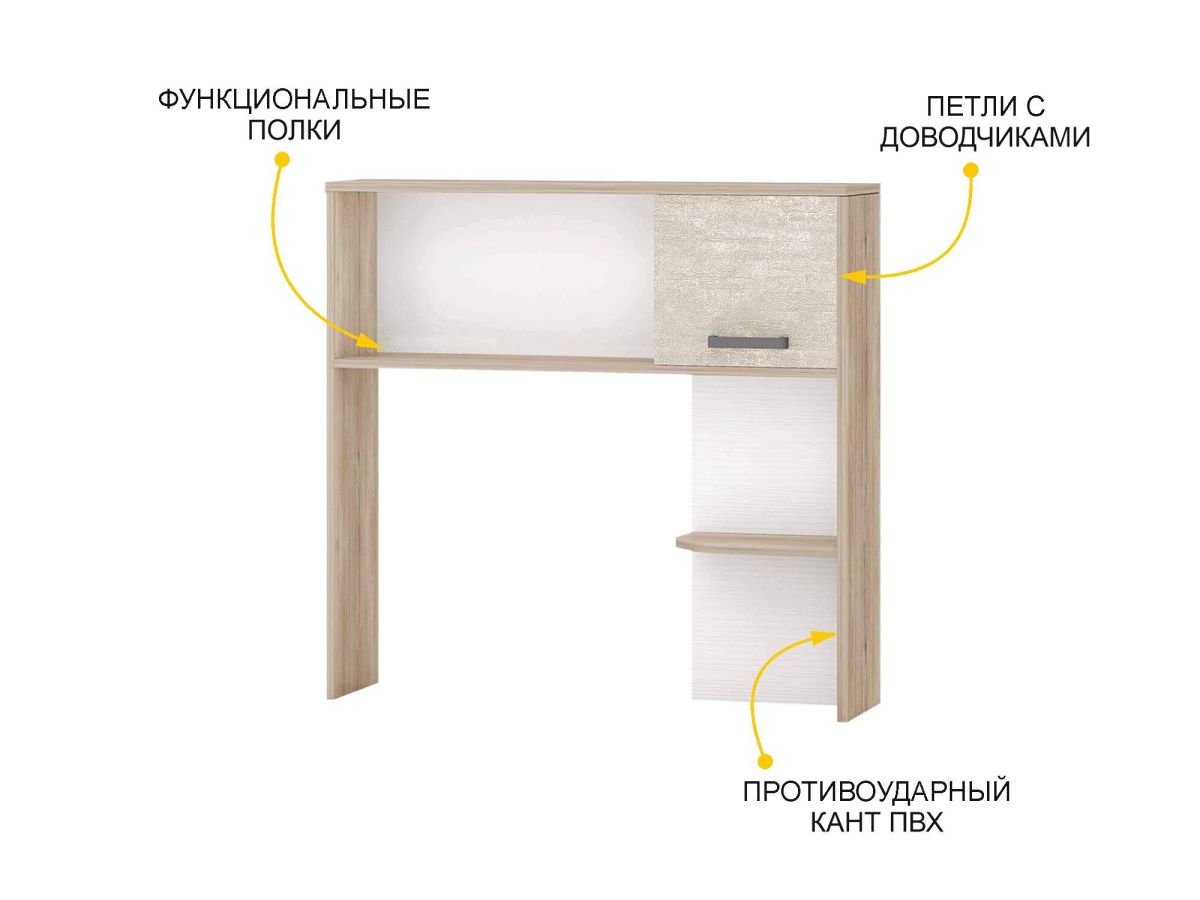 - Стол оснащен петлями с доводчиками, которые обеспечивают плавное и бесшумное закрывание дверцы надстройки.